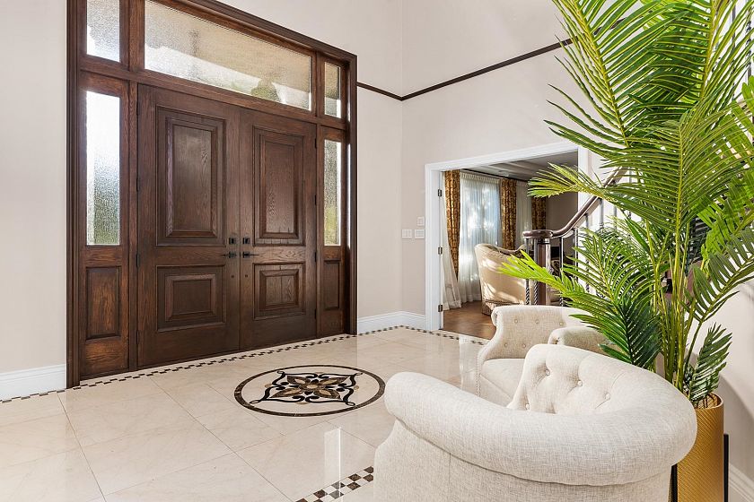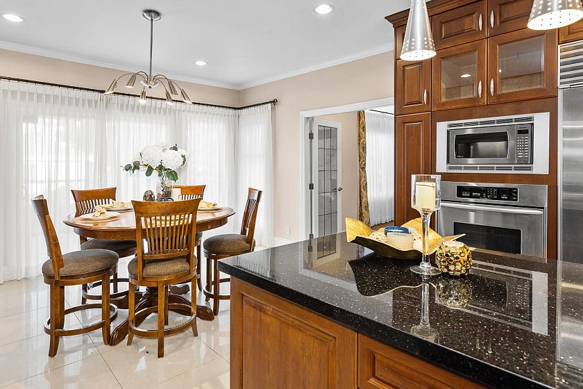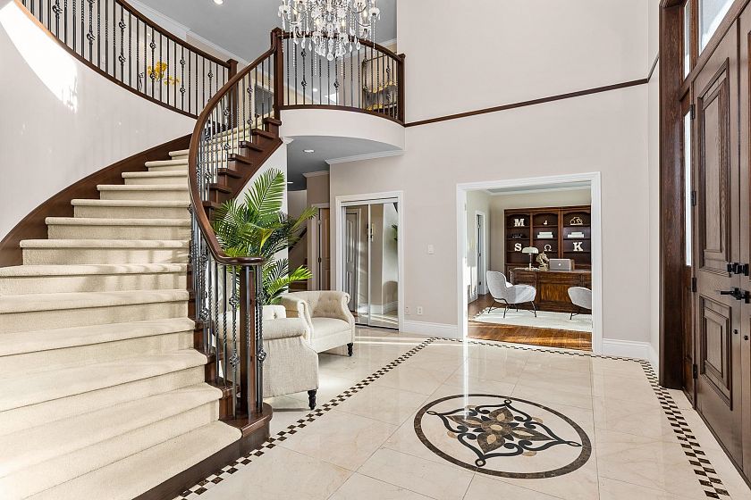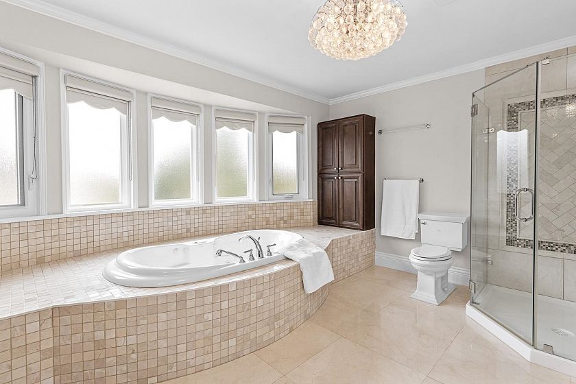 Luxury home on a quiet inner street in Vancouver Westside, situated on a 11,451 sq. ft. lot with nearly 7,000 sq. ft. of living space. Well maintained and renovated. Grand double-height foyer with crystal chandelier, skylights, and curved spiral staircase. Spacious main floor with one bedroom and wok kitchen. Upper level offers 4 ensuite bedrooms. Fully finished basement with separate kitchen, 2 bedrooms, recreation area, home theatre, sauna, and hot tub. Lane access with 4-car garage.