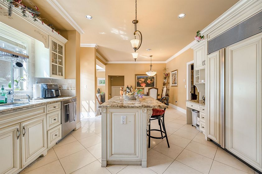 Extremely well-built and well-maintained home with lane access in a picturesque setting in prestigious South Granville. Fully renovated in 2008, this home offers a great floor plan. The main floor features elegant principal rooms, a gourmet kitchen with a wok kitchen, bright office, and a covered deck off the family room. Upstairs, you'll find five spacious bedrooms. The basement boasts a super bright recreation room with wet bar, games room, & 1 bedroom. This classic Tudor-style house showcases exceptional craftsmanship and detailing. Just steps from Maple Grove and Magee Secondary catchment. Open House: January 10-11 (Sat & Sun) 2-4 pm