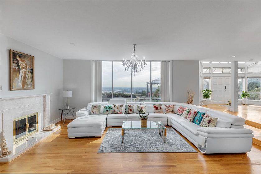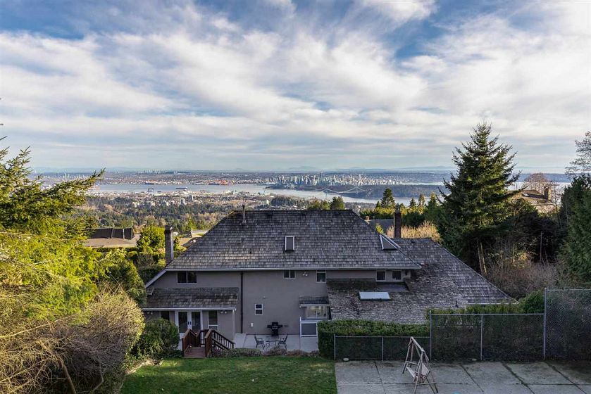 Experience sweeping panoramic views of Lions Gate Bridge, city lights, ocean, and mountains from both main and upper levels of this beautifully updated 4-bed, 5-bath residence. Enjoy 24ft ceilings with skylights welcomes you into a sun-drenched, open-concept layout featuring elegant living and dining areas, gas fireplaces, and a gourmet kitchen with gas range and breakfast nook. The manicured backyard is perfect for entertaining. Lower level offers separate-entry office with nanny suite potential. Upstairs, all bedrooms enjoy breathtaking vistas, while the primary retreat boasts a walk-in closet, double vanity, and jetted soaker tub.
