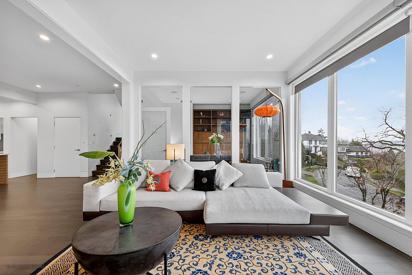 Panoramic water and mountain view in prestigious Point Grey! Welcome to this custom built home in contemporary style. Functional and open layout, high-end Miele appliances, floor to ceiling windows, elevator, smart home system, wine cellar, and media room. This luxury home features 4 bedrooms, 1 flex and 4-1/2 bathrooms. Total 3395sft interior living space situated on a 5512.5sft lot. The spacious patio on top floor is ideal for family gathering. Enjoy stunning ocean and north shore view on all levels. Best School Catchment: Queen Mary Elementary & Lord Byng Secondary. Don's miss it!