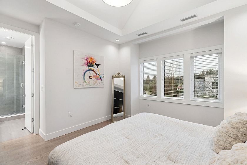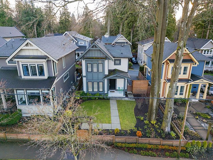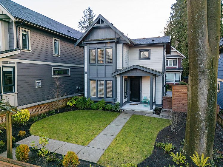 Welcome to Elenora Residences, a beautiful West Coast inspired and Energy Star certified single family home with 4 beds, 4 baths & fully finished basement w/ recreation area and steam shower. Engineered oak flooring with radiant heating throughout, alarm system, air conditioning, and an HRV system for year-round comfort. This home features a welcoming living room with gas fireplace, gourmet kitchen featuring quartz countertops, Wolf 6-burner range and high-end Bosch appliances; large dining room with French doors leading to an inviting covered patio. At the front, a lovely garden professionally designed by a landscape architect for a summer oasis. Backing onto Mahon Park, you are steps from nature and trails, yet only a 15-minute drive from downtown - this is North Shore's finest living.