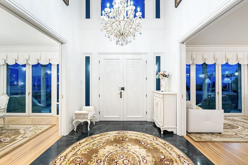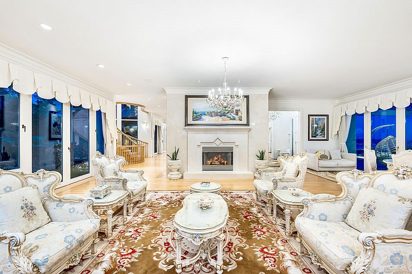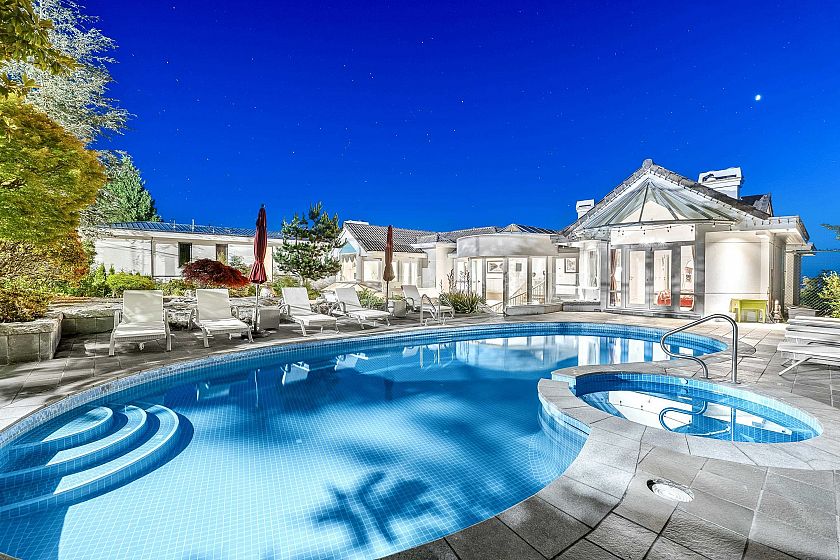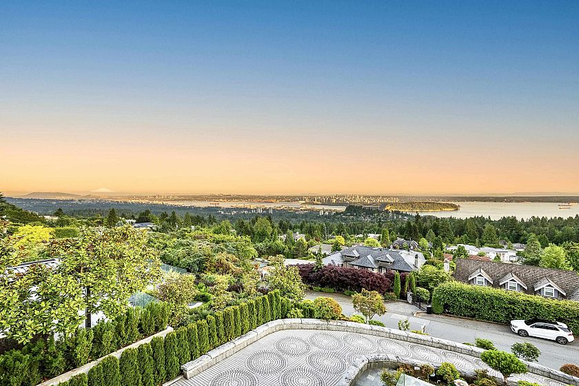 World-Class estate on King George’s Way in West Vancouver’s exclusive British Properties. 9,900 SF, 6-bed, 11-bath on private 26,000+ SF (.60-acre) gated lot. Panoramic views – Mount Baker to downtown skyline & harbour. Classic architecture, manicured gardens, & grand motor court. Highlights incl marble-clad foyer, formal living/dining, great rm w/wet bar, gourmet kitchen & family rm – opening to terrace & ocean views. Outdoor amenities incl pool/spa, fireside lounges, tennis court, & entertainment areas. Luxurious primary suite offers dual dressing rms & his-her ensuites, separate guest & nanny quarters below. Minutes to top schools, golf & shopping. Extras: media rm, study, elevator, 5–6 car garage, A/C, security sys & $1.5M in upgrades. Timeless elegance with modern sophistication.