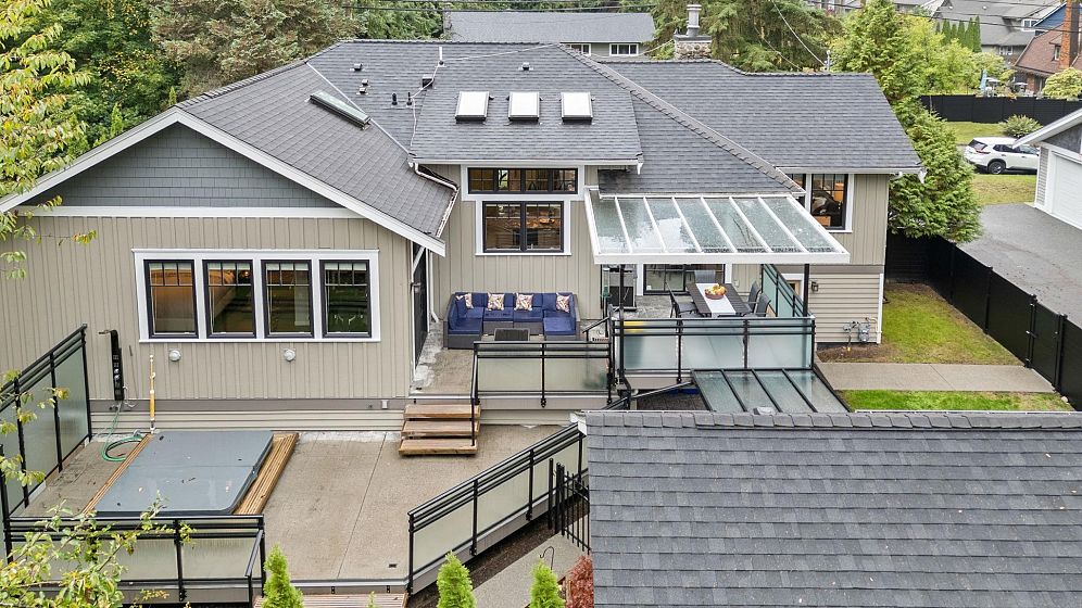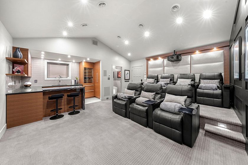 How to describe this amazing home? A rare blend of elegance & functional comfort, this residence offers a one-of-a-kind layout design for modern living & entertaining. The upper level features open, light-filled spaces with cozy corners. Stunning living & dining area, three bedrooms, two stunning bathrooms, a family sitting room, & laundry. Below is a fully self-contained 3-bedroom suite with its own entrance—ideal for extended family or a great tenant. A separate-access gym or office adds versatility & privacy. The showstopper: an award-winning detached theatre pavilion with entertaining kitchen & luxe bathroom. Next-level living in one of North Vancouver’s most sought-after neighbourhoods. Where style, comfort, & creativity meet.