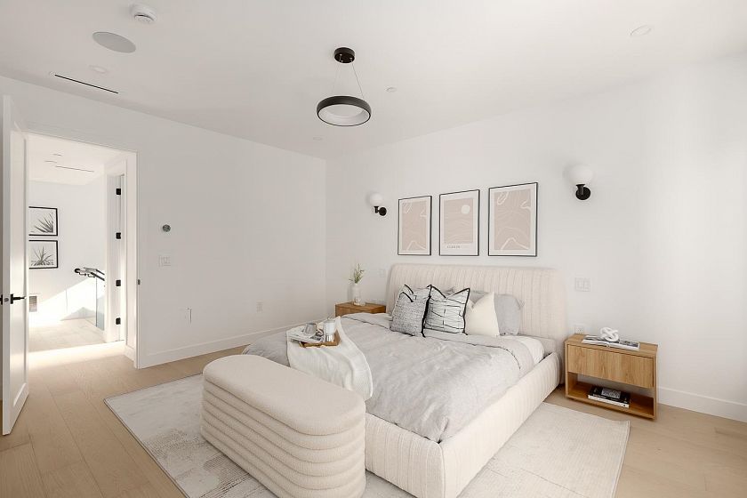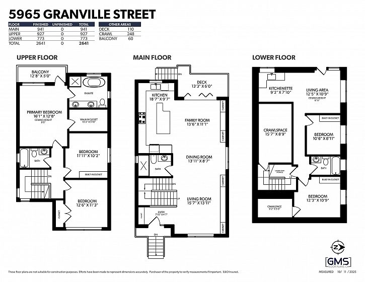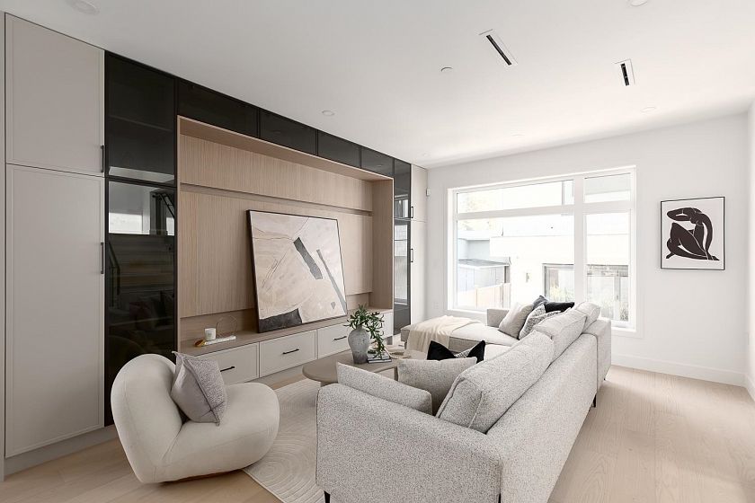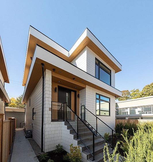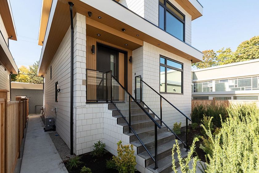 This fully detached carriage home offers over 2,600sf across three spacious levels with no shared walls, providing true single-family living in South Granville. The main floor boasts over 900sf with full-sized living, dining, and family rooms: ideal for entertaining or everyday life. A large kitchen anchors the space with access to the rear yard deck. Upstairs are three large bedrooms, including a massive primary with walk-in closet and a luxe 5-piece ensuite. The lower level is roughed in for a 2-bedroom suite or can be enjoyed as additional living space. Private 1-car garage included. Thoughtful layout and generous proportions make this home perfect for families or those needing room to grow. Radiant heat, A/C and located near top schools, parks, shops, restaurants, and transit.