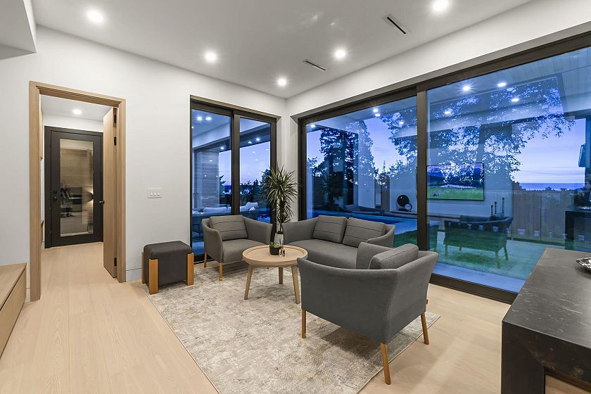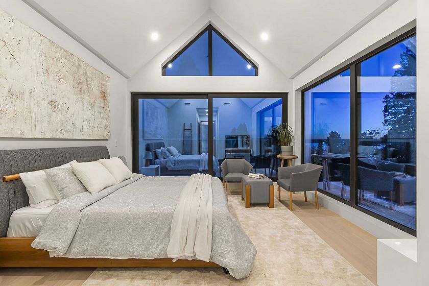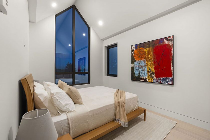 Exceptional Robert Blaney–designed residence in Ambleside’s most coveted pocket. This timeless 3-level, 5-bed, 5-bath farmhouse features impeccable millwork, solid wood doors with hidden hinges, high ceilings, and refined custom finishes throughout. The main level enjoys ocean peek-a-boo views and seamless indoor–outdoor living to a sun-soaked south-facing yard with pool and built-in BBQ. Three vaulted bedrooms up include a stunning primary suite with ocean views and a fully millworked ensuite. Miele appliances, level backyard, and covered access to a sleek detached garage complete this stand-out home.