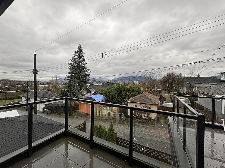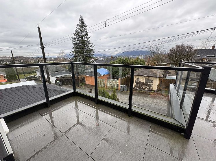 WOW!! Prime Hastings area LANEWAY HOUSE built in 2021. Located off the lane on the rear portion of a 33'x122' lot. Main floor bedroom offers a slider to a private patio while the upstairs primary bedroom offers a slider to a large view deck to sit and enjoy the views of the N Shore Mountains and the City. Main floor layout offers a kitchen with white arborite cabinets and onyx countertops, engineered hardwood flooring throughout, living area with space for a dining table, closet laundry with hook up for stacking washer/dryer. Upper floor layout offers 2 bedrooms. The upper bath has a deep tub. Location is prime and close to transit, shopping, local restaurants and the PNE.