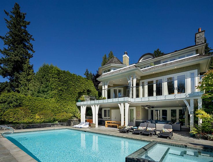 Spectacular Waterfront value! This gorgeous craftsman, crafted by Goldwood Homes offers the ultimate in design and quality living and is situated in a picture perfect setting adjacent to private park and fantastic beach. This rare treat of a residence enjoys the ideal open plan with inviting grand foyer leading up to 4 large bedrooms, including a luxurious master suite with private bluestone terrace overlooking the bay. The grand feeling of this home with a perfect gourmet chefs kitchen, vaulted ceilings, walk out patios, covered terraces and charming poolside setting, offer's complete tranquility throughout the year. The lower level walkout features lovely wine cellar, steam room, media/ games area and guests quarters. A very special Waterfront retreat. One of a kind!