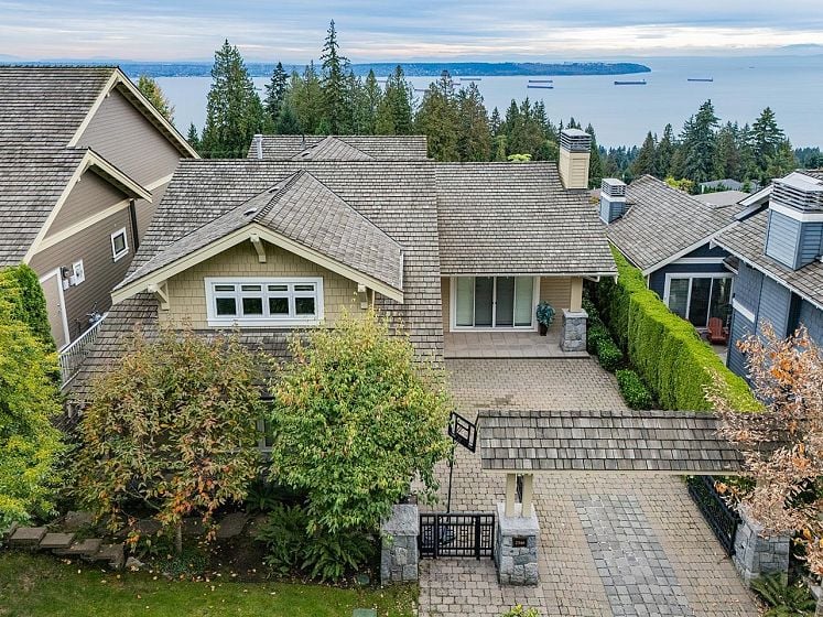 Spectacular south-facing home with unobstructed ocean views. From the balcony, you can see Collingwood School, so close that kids can walk on their own, with Mulgrave School just a 15-minute stroll away, perfect for families who value top education. Bright open layout across three levels featuring 3 en-suite bedrooms, a private office, and a vaulted loft. Custom upgrades include a high-performance stove, wine cooler, additional kitchen cabinet, electric gate, and a brand-new sauna. Freshly painted, new carpet, refinished hardwood floors, and new window screens throughout. Enjoy sun-drenched patios and beautifully landscaped gardens. Open House: Feb 28, Sat, 2-4 pm
