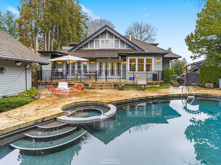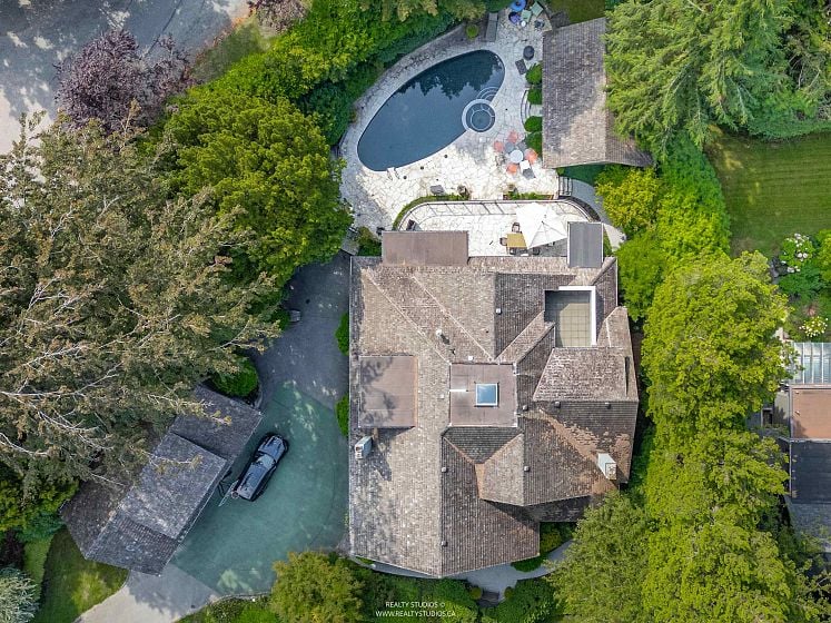 A rare URBAN OASIS in the epitome of First Shaughnessy living on corner of Cedar Cr. @ Pine. Timeless English style GRAND MANSION (8,000sf approx) on 23,500sf of gated private park-like lush gardens. Fully restored in 2000, including all mechanical, plumbing, electrical updates; kitchen & baths; basement raised to 9ft ceiling height & then improved again in 2025 w/ AC, pool upgrade, bathroom renovations, nanny suite in the garage and rough in for wine cellar in basement to name a few… Beautiful oak floors and wainscotting throughout. Grand principal rooms with good flow. Lovely oval-shaped pool + hot-tub + a pool house cabana in the sun-drenched southern yard. Two level 4-car garage. Meticulously kept elegant residence, a truly "Lifestyles" property move-in ready.