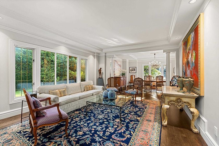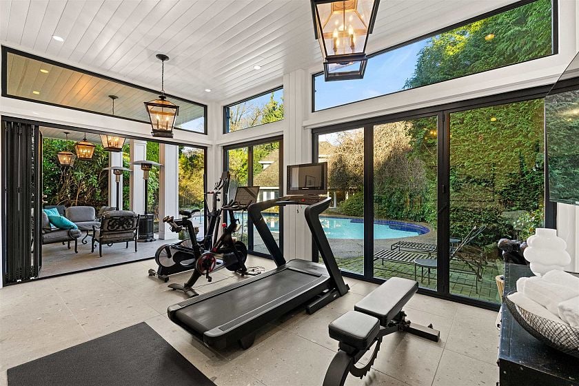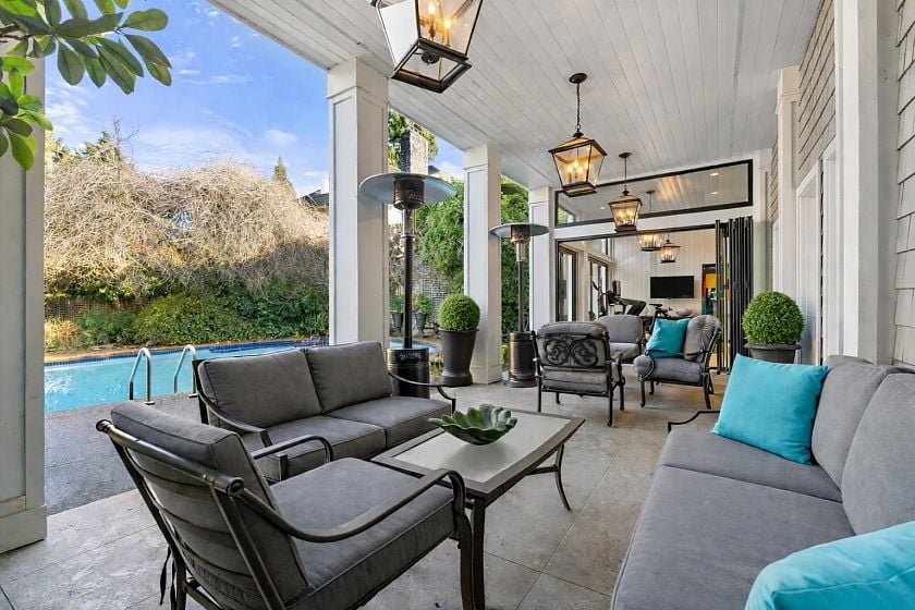 A rare offering in prestigious First Shaughnessy. This elegant coach house provides exceptional living space combined with extraordinary outdoor entertaining areas. Gracious principal rooms feature h/w floors, crown mouldings, and garden outlooks, while the well-appointed kitchen opens directly to outdoor entertaining areas. 3 generous bedrooms up include a sumptuous primary suite with marble ensuite and w/in closet, plus a finished lower level with rec-room, office, and wine room. Private grounds feature a swimming pool, covered cabana, and fully equipped glass enclosed gym, 3-piece pool bathroom, and storage. A detached garage with artist studio above, secure gated entry, and ample parking complete this exceptional offering.