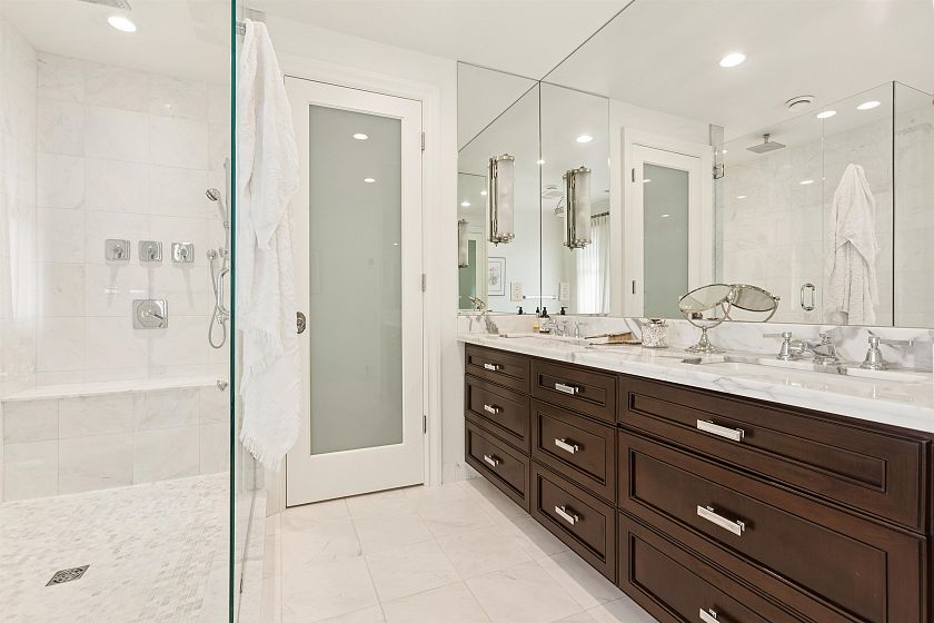 Nestled in coveted Ambleside, this custom-built residence by Georgie Award–winning API Construction showcases timeless design and exceptional craftsmanship. Impeccably maintained and showing like new, featuring rare premium finishes including Statuario marble countertops, coffered ceilings, custom wall panelling, 5" wide white oak floors, a Rubber Eco Roof, Milgard windows, and bespoke built-ins throughout. The gourmet kitchen impresses w/Wolf, Sub-Zero & Miele appliances. A stunning 700 sq.ft. wraparound covered veranda w/built-in BBQ, heaters, and firepit offers seamless year-round entertaining. Retreat to the spa-inspired marble ensuite, while a legal suite adds flexibility and value. Just steps to beaches, top schools, shops & restaurants—offering the ultimate Ambleside lifestyle.