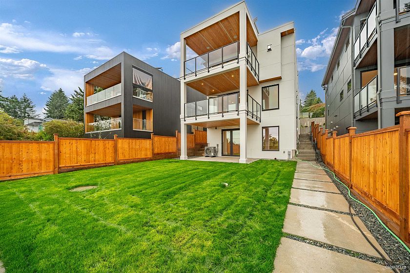 The most impressive home in the area. Close to all amenities Hwy 1, Shops, Schools, and Restaurants. Architect-Bill Curtis Designs, Interior Designer-Soho Design Studio. Miele Appliances, Tenzo faucets, Lodes lighting, EV charger, built in vacuum, speakers in kitchen and balcony. High end finishing and workmanship throughout the house indoor and outdoor. 3 luxurious bedrooms, open concept kitchen and living room, with an office area and theatre room/family room. Also features a 1 bedroom suite - mortgage helper. Breathtaking OCEAN & CITY views. Have a blast hosting your guests on the balcony or your private fenced backyard. A must see. Touchbase or call to book showings. OPEN HOUSE MARCH 8 2-4PM