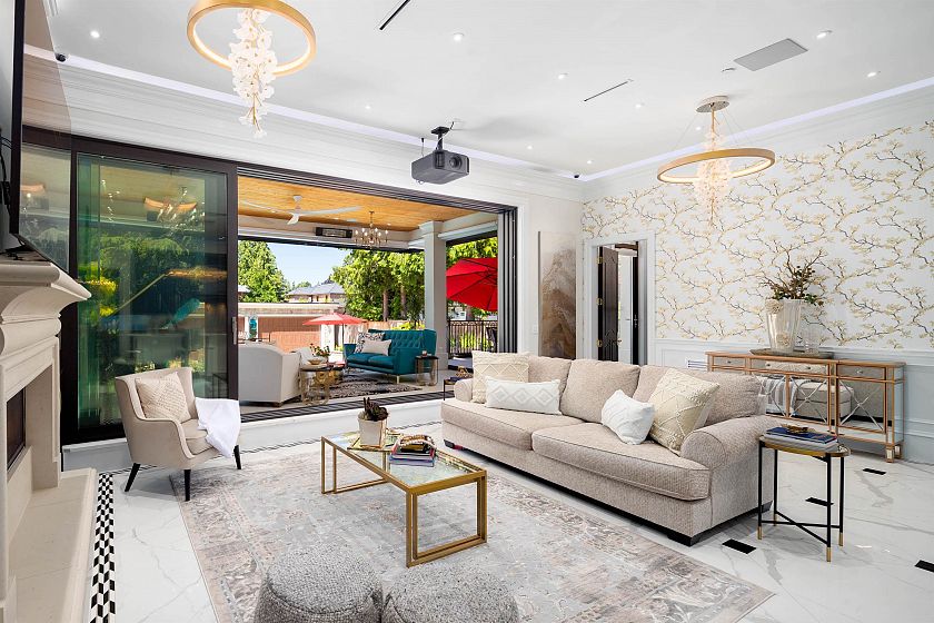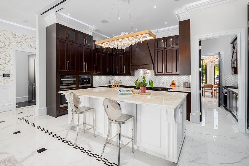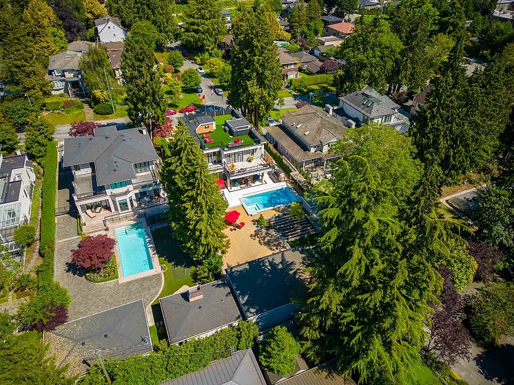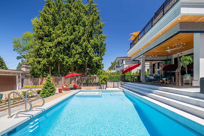 Exquisite European styled home boasting the best in quality & workmanship. Spacious living features over 8,200 sq ft, w/up to 12’ high ceilings, anchored by tasteful marble flooring with detailed inlay. Elegant wainscotting & millwork, gourmet kitchen & wok kitchen with high end appliances. 4 roomy ensted bedroom up has high ceilings - a perfect family sanctuary. Triple glazed windows, A/C, HRV, Control4 automation, water filtration system for comfort. Delightful, heated glass enclosed sunroom overlooks swimming pool set amidst landscaped garden. Down features a large rec rm with wet bar, infrared sauna, media & exercise room plus 4 bedroom legal rental suite. Rooftop deck has large putting green! 4 car garage, plus 761 sq ft, 2 level secondary building. Extreme value for this luxury home.