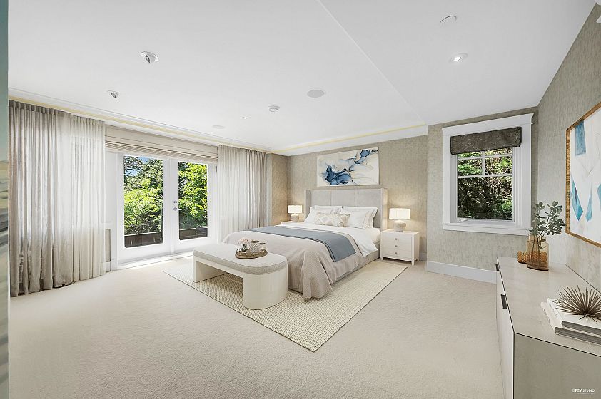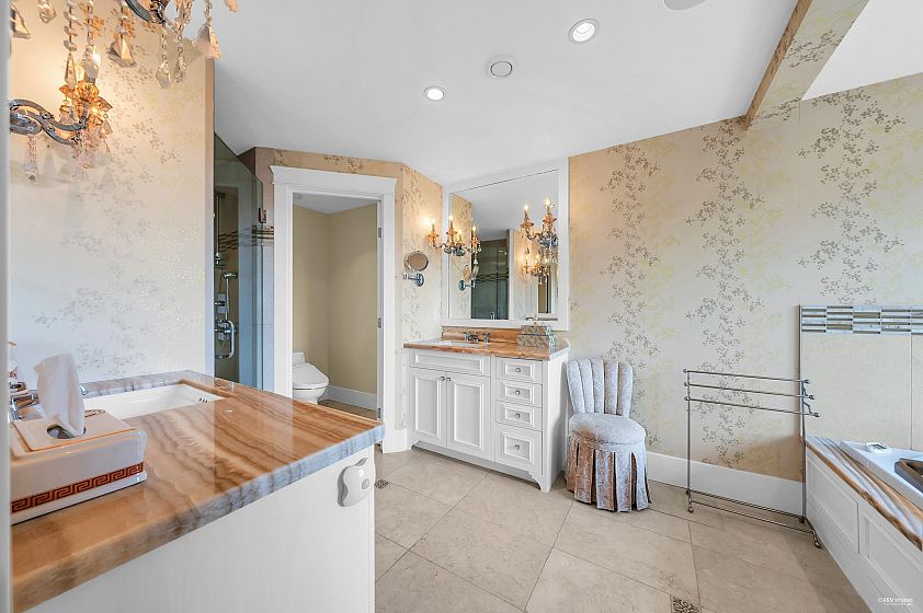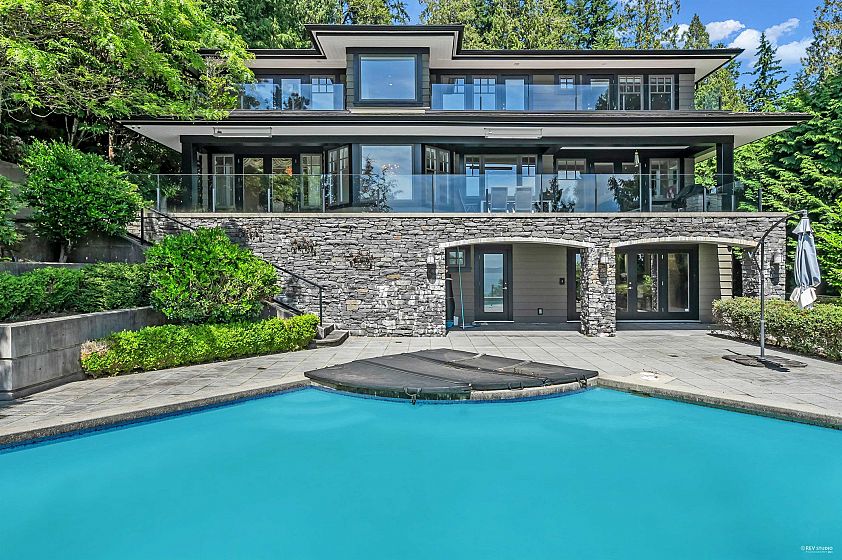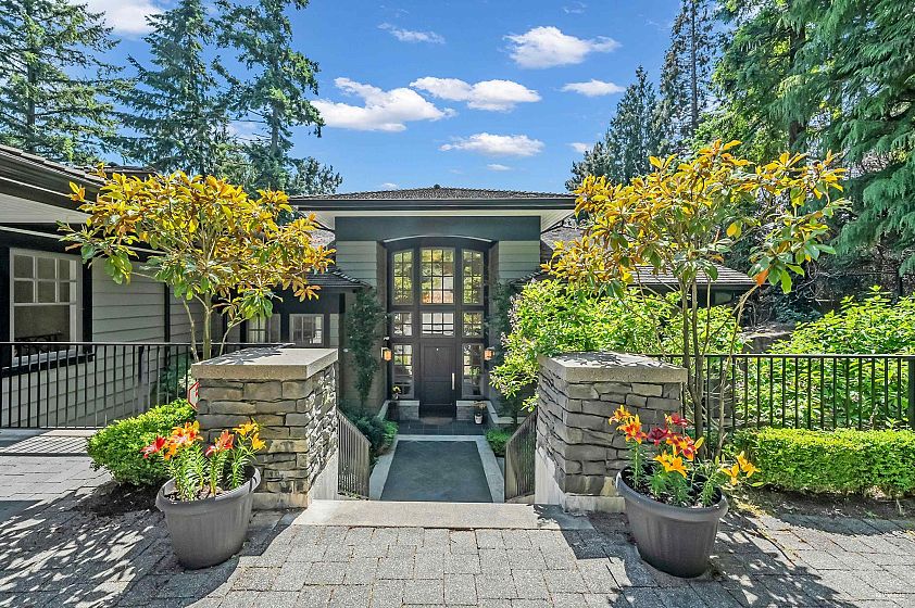 This exquisite custom residence, built by renowned master builder Steven Bradner and designed by Gordon Hylinski, is tucked away on a private, gated half-acre in prestigious Lower Caulfeild. Thoughtfully positioned to capture tranquil ocean glimpses, the home offers over 2,500 sq.ft. of refined main-level living, including a gourmet chef’s kitchen and an inviting family room that seamlessly extends onto an expansive 800 sq.ft. terrace—perfect for entertaining—overlooking the sun-soaked pool and spa.Upstairs, four generously sized bedrooms each feature their own ensuite bathrooms and private balconies, creating a resort-like experience for every family member. The walk-out lower level boasts a spacious rec room with direct access to the pool deck, ideal for indoor-outdoor family living.