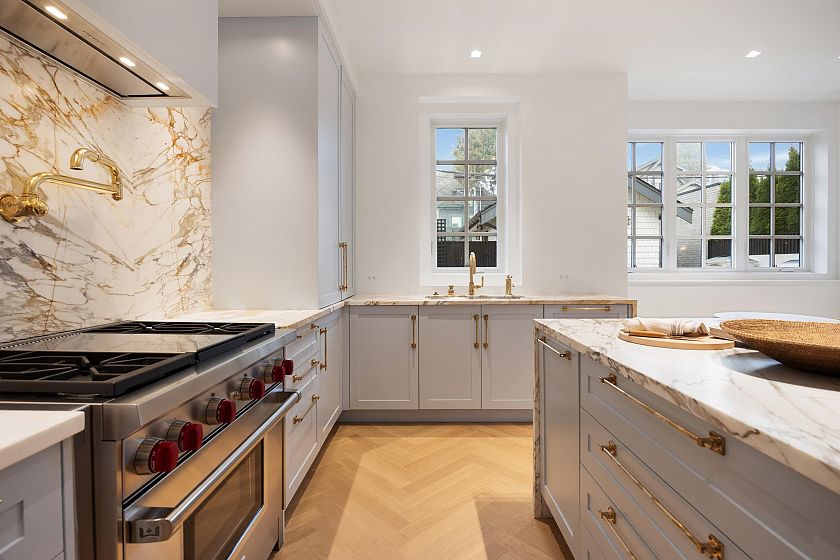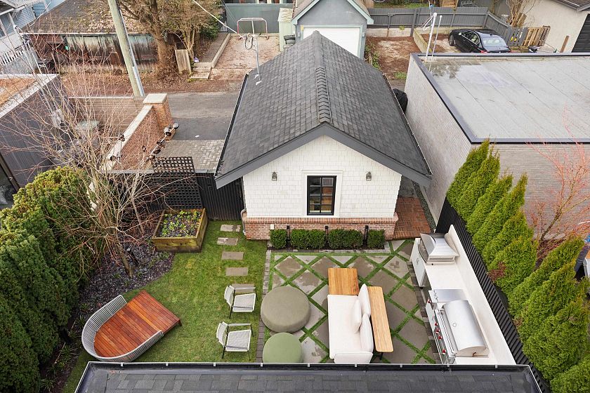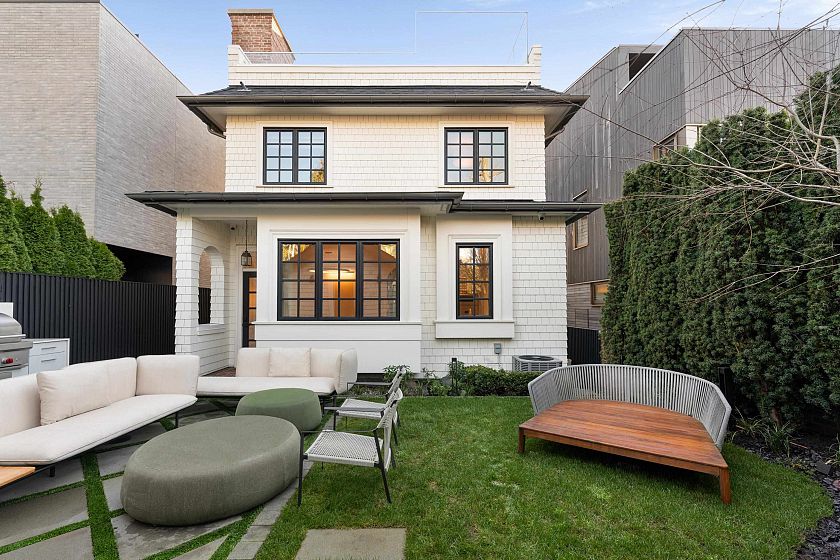 Purchased brand new in 2020, this exceptional residence underwent an immediate and transformative nearly $2 million designer renovation. Crafted with intention, artistry, and uncompromising attention to detail located just one block from the ocean, the home showcases INCREDIBLE quality marble craftsmanship with striking solid marble archways, dramatic stone detailing and oak herringbone hardwood throughout. The kitchen features premium appliances with beautiful seamless indoor-outdoor living to both private front and backyard retreats. Upstairs, 3 serene bedrooms are paired with spa-inspired bathrooms. A top-floor retreat, with a stunning pink onyx sauna, opens to a spectacular rooftop deck with gas fireplace. Steps to Kits Beach, the seawall, and vibrant cafés, boutiques, and restaurants.