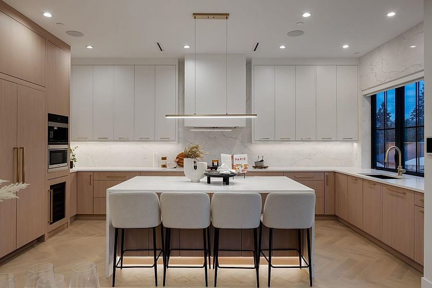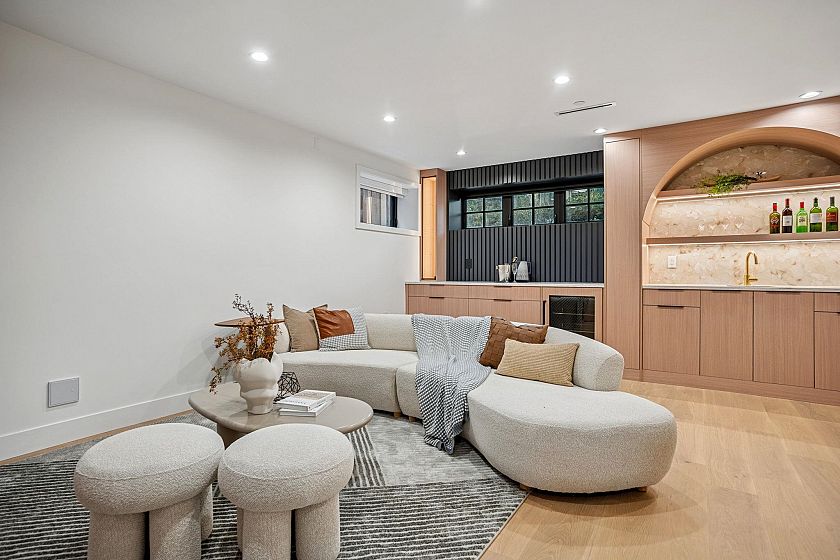 Exceptional luxury residence by Encore Collection, steps to Douglas Park & Emily Carr Elementary. This thoughtfully designed open-concept home is built for modern living & entertaining, featuring Eclipse folding doors for seamless indoor-outdoor flow, white oak hardwood floors, custom cabinetry, artisan millwork & a striking feature fireplace. Fully integrated Control4 smart home w/ automated blinds adds everyday comfort & convenience. Chef’s kitchen offers premium Miele & Fisher & Paykel appliances, built-in coffee machine & dual-temp beverage centre. Spa-inspired living includes a private sauna & steam shower. Step outside to a resort-style backyard w/ a fully built-in BBQ station w/ sink, side burner & Napoleon BBQ, + a separate gas fire table. Eric Hamber Secondary.