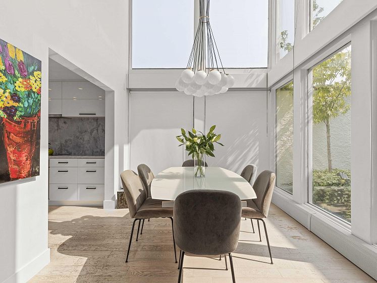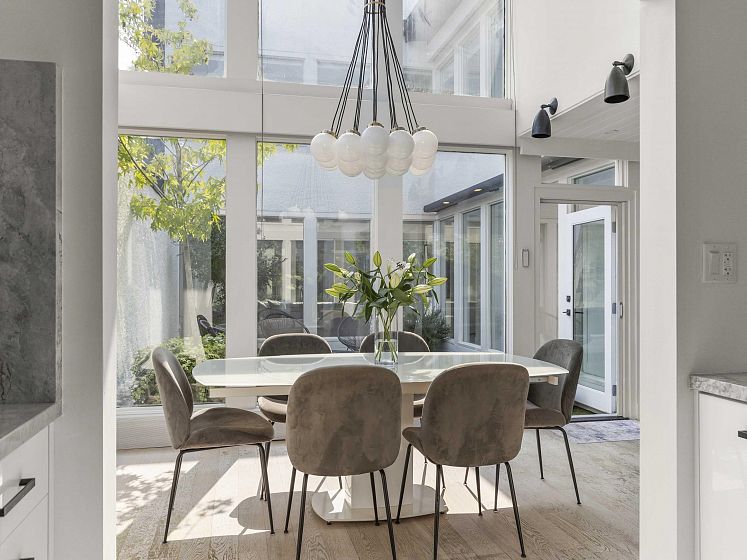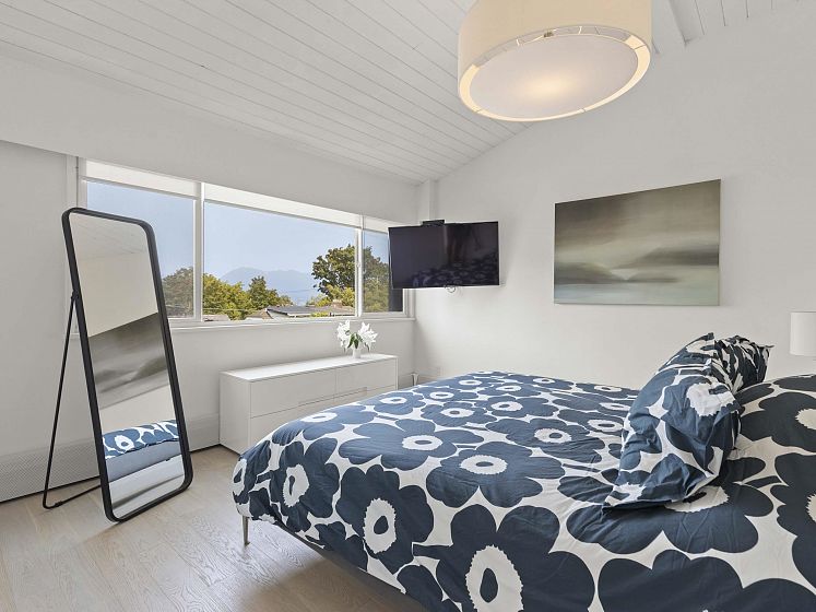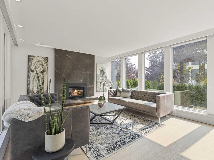 This architectural masterpiece by renowned James Cheng stands as a testament to exceptional craftmanship in prestigious Point Grey. Spanning 3,220 sqft, this 5 bed, 3.5 bath residence exemplifies sophisticated modern living through its open-concept design. Main floor features floor-to-ceiling windows, which flood the space w/ natural light, while custom light fixtures illuminate meticulously crafted spaces featuring high-end finishings throughout. Spacious principal rooms, modern kitchen, & an enclosed open-air courtyard, complete with turf grass and firepit, creates an intimate outdoor sanctuary perfect for entertaining. 3 beds up including primary w/ ensuite. Down find rec. room, & 2bed suite. Near to UBC, beach and downtown . Suite is ideal for young adult children living at home