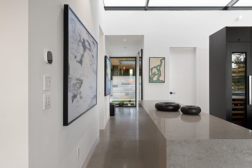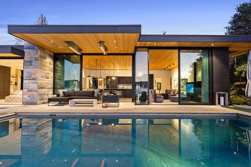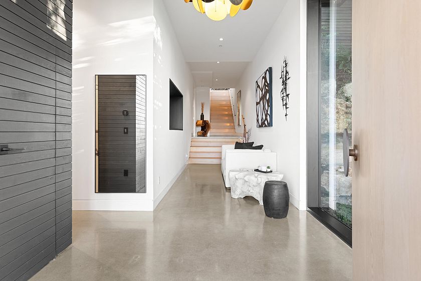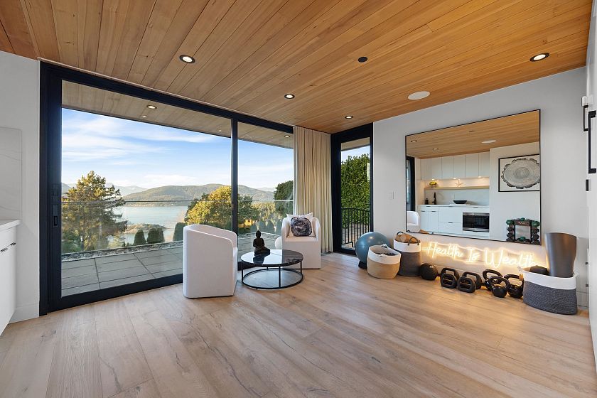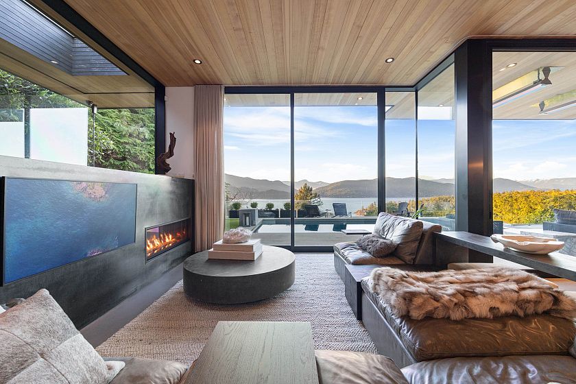 Perched in prestigious Gleneagles, this exceptional West Vancouver residence offers refined West Coast living with breathtaking 180-degree ocean and island views and absolute privacy. Set on a secluded one-third acre property steps from Gleneagles Golf Course, the home is surrounded by natural serenity. Designed by award-winning architect Fritz de Vries, it showcases striking concrete architecture, expansive glass walls, and seamless indoor-outdoor living. Polished concrete and wide-plank hardwood floors complement custom millwork close to $800,000 in owner upgrades, plus a heated driveway and advanced security. The main level features elegant open living and dining spaces and a chef’s kitchen. Four bedrooms include a stunning primary suite with spa-like ensuite. A RARE ARCHITECTURAL GEM