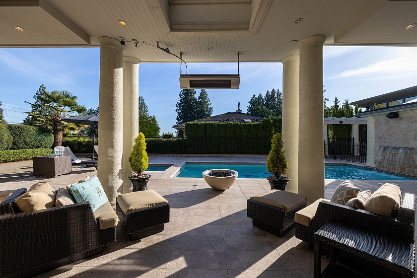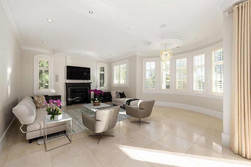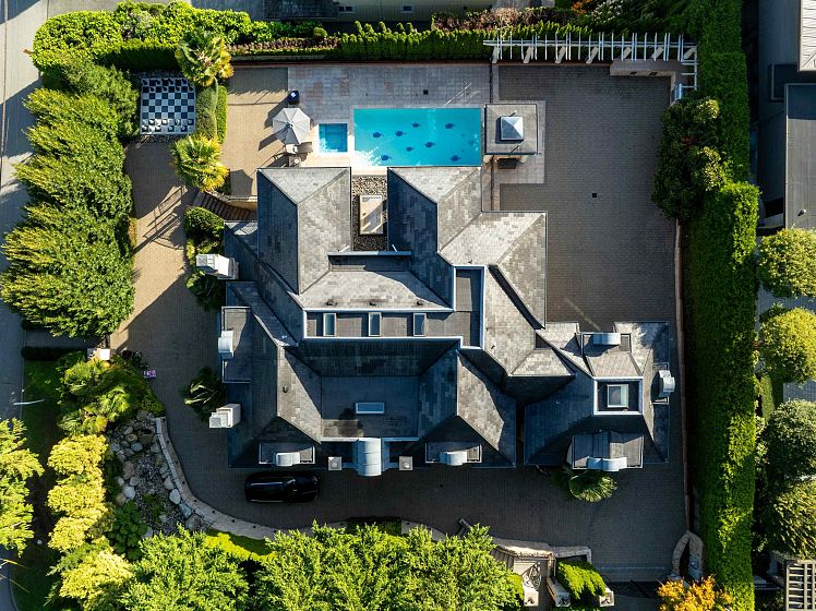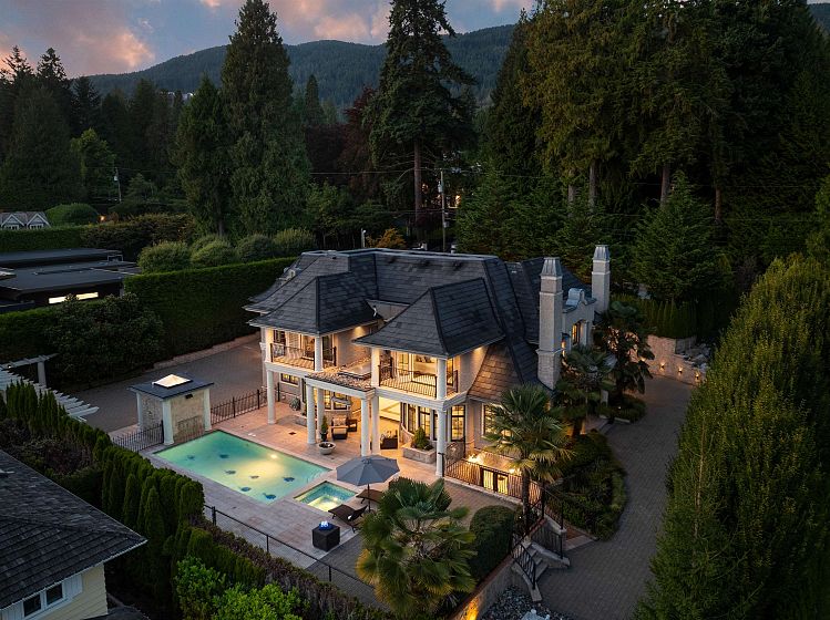 Magnificent European Chateau in Prestigious Altamont. A Marque Thompson–designed gated estate, this 6-bedroom, 8-bath residence blends European elegance with modern sophistication. Grand formal rooms, soaring ceilings & a handcrafted marble staircase set an opulent tone. The chef’s kitchen with Sub-Zero, Wolf & Miele appliances plus WOK kitchen opens to a resort-style backyard with swimming pool, Jacuzzi, firepit & pavilion. Upstairs, the primary suite is a spa retreat, with marble finishes, rain shower, freestanding tub & boutique-style walk-in. The lower level features a theatre, wine cellar, gym, sauna & nanny quarters. Enhanced with smart automation, radiant heating & biometric security, this estate defines luxury living in one of West Vancouver’s most prestigious enclaves.