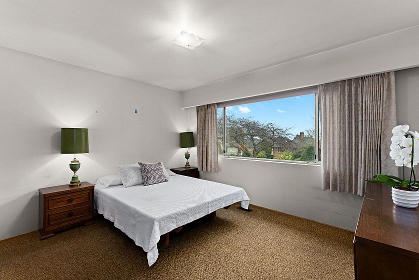 Well-maintained 6-bedroom, 3-bathroom family home on a prime corner lot in a family-friendly neighbourhood, just steps from J.W. Sexsmith Elementary. With over 2,700 sq ft of living space, this 2-storey residence offers incredible potential to live in, renovate, or redevelop. The main living room showcases vaulted ceilings, rich wood panelling, exposed beams, and a substantial stone fireplace. Large picture windows invite natural light and frame views of mature greenery. Ideal for a young family ready to modernize or a builder seeking a superb lot with great frontage. A unique opportunity with charm, location, and future upside.