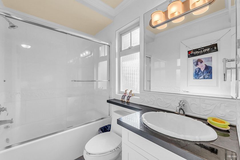 Located in the desirable Arbutus area, sits 50'x122' (6100 sqft lot) on a tree lined street. This close to 3600 sqft home features a spacious plan for living, dining and family room areas, hardwood flooring on main & upstairs, granite countertops, gas fireplace, A/C, HRV, radiant flooring. Updated throughout the years with NEW: washer & high-efficiency tankless water heater in 2017, fridge & microwave in 2021, stove, hoodfan, basement flooring & EV charger in 2025. Upstairs with 4 roomy bedrooms & 3 bathrooms. Versatile basement w/ rec room, 1 bedroom & a separate 2 bedrooms suite, could be a mortgage helper. Large covered patio at the back, great for BBQ or entertaining. 3 cars detached garage & low maintenance backyard. Prince of Wales Sec catchment & 3 blocks to Trafalgar Elem School.