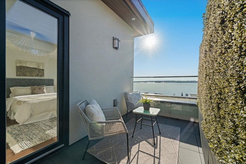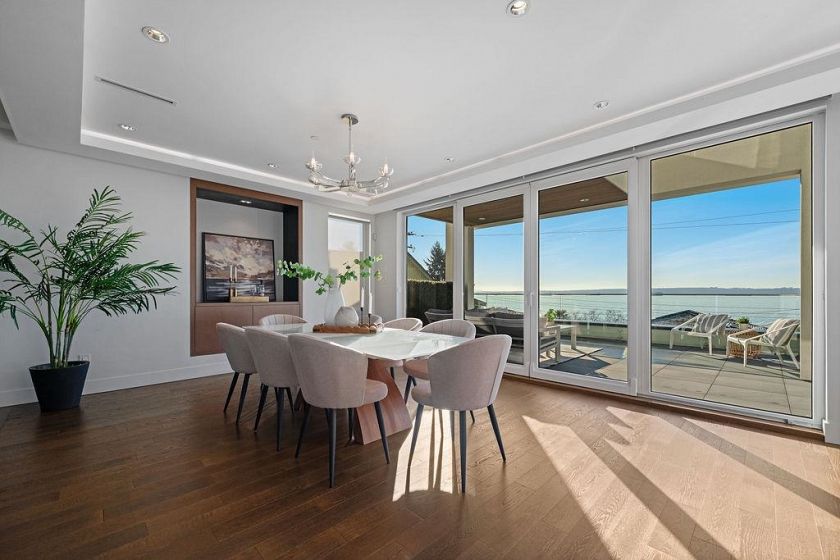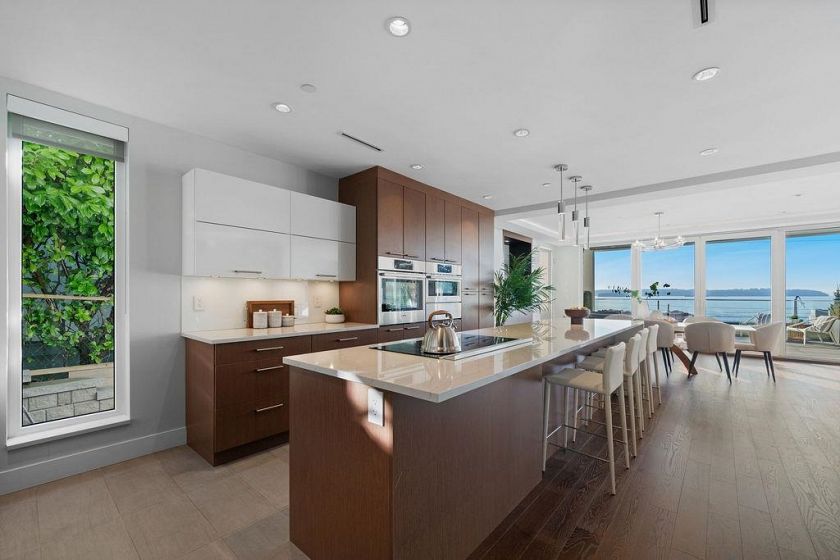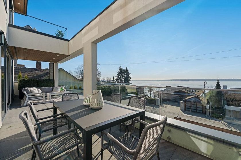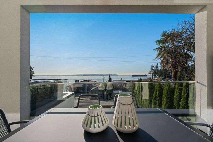 This isn't just a home ... it’s a statement. Welcome to 3373 Radcliffe Avenue in West Bay, West Vancouver, set on one of the coastline’s most iconic semi-waterfront streets. Just steps to the beach, with breathtaking ocean views, this is West Vancouver living at its most effortless. Inside, nearly 3,800 sq ft of refined coastal design unfolds across 5 bedrooms and 6 bathrooms, wrapped in light, glass (floor to ceiling Euro windows), and seamless indoor-outdoor flow. Expansive ocean-view balconies set the stage for sunset wine nights and unforgettable entertaining. The chef’s kitchen is sleek and intentional, complete with premium appliances and a separate wok kitchen—exactly what you’d expect at this level. An in-home elevator, solar power, radiant heat, A/C with HRV, and full security.
