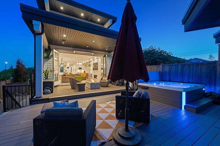 SPECTACULAR 5 bedroom, 5 bath family home awaits w/ sensational views of the City, Ocean & NS Mountains!! You'll love the open concept layout boasting over 3500 sq ft of living space over 3 levels. High-end finishings throughout with radiant in-floor heat, A/C, eclipse back doors, heated deck, gas fire table, hot tub, surround sound system, irrigation system & home theatre w/ wet bar to name a few! Over 700sq ft of outside deck, balcony and patio spaces for your enjoyment & entertaining needs! Many more additional upgrades. Legal 1 bedroom suite with lock off, licensed for air b&b. Convenient Central Lonsdale location, steps from Victoria Park and a short walk to the Shipyards, shops, restaurants & more! BOOK YOUR PRIVATE VIEWING TODAY!