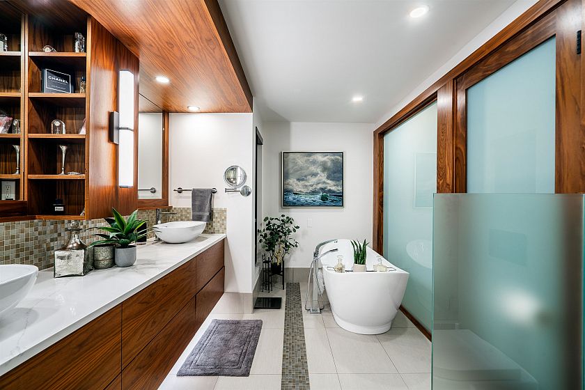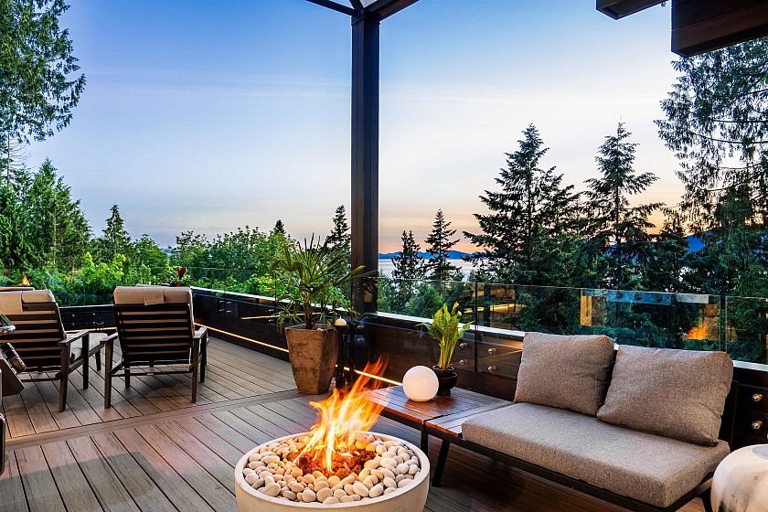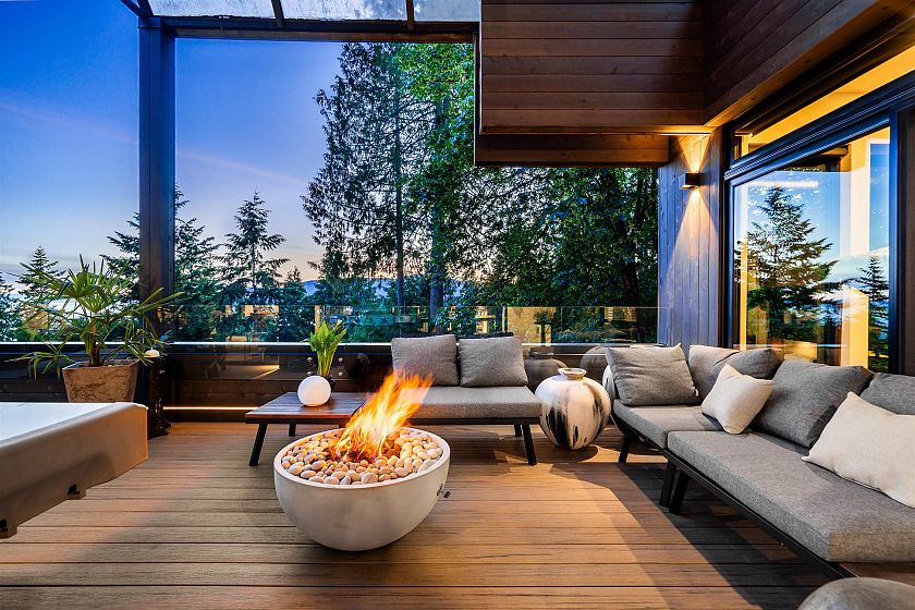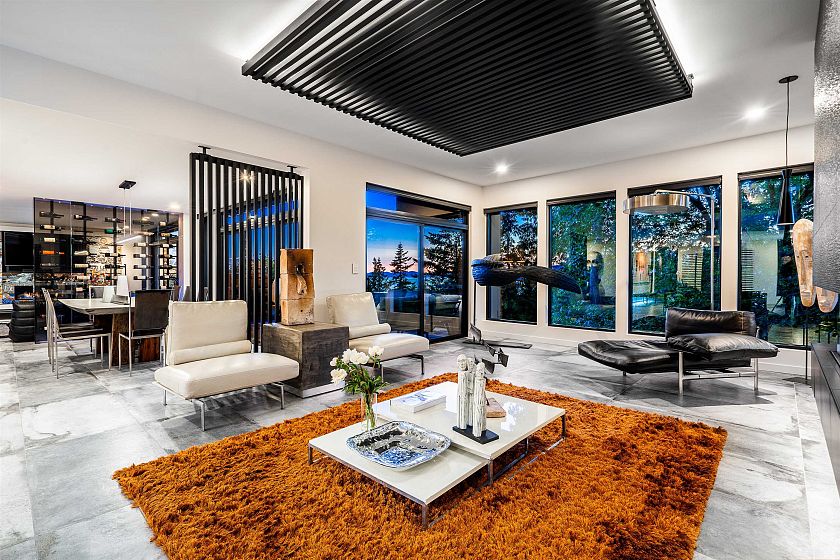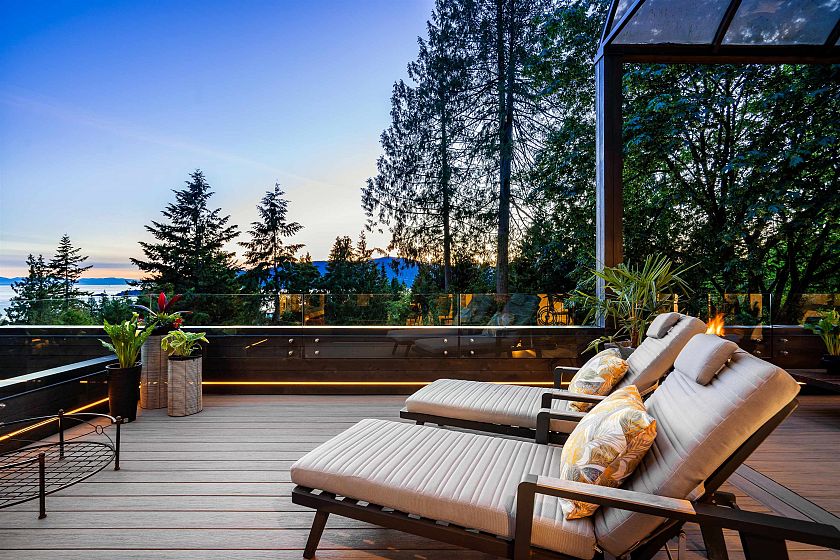 This sensational residence in West Vancouver Montiverdi Estates embodies Arther Erikson’s West Coast architecture its finest. Extensive concrete and timber construction together with an impeccable choice of quality materials define this 3 bedroom, 4 bathroom residence. Each principal living area offers ocean views in one of the most beautiful settings imaginable providing an wonderful indoor outdoor lifestyle with 3 fireside terraces. Additional features include a fabulous hot tub with outdoor shower, media room, private office, exercise room and a separate studio. The residence has recently completed a 3 year extensive renovation with new rain screen, roof, decks, windows and LUXE interior incorporating every modern convenience one would expect including a private elevator and more.