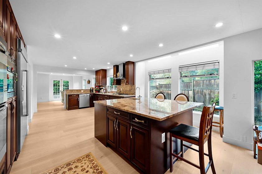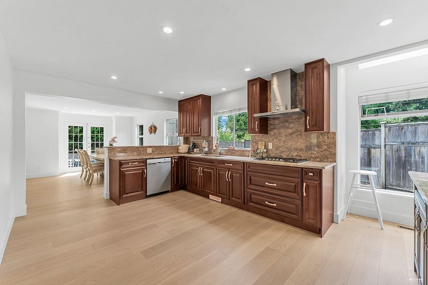 Experience the charm of this exquisite and luxurious family residence, set on a sunny and secluded 12,000 sq.ft. lot. Situated on a prestigious Cedardale cul-de-sac, this remarkable home boasts an impressive layout with generous living and dining areas that open up through French doors to a sun-drenched deck, and a lush south-facing garden. Recent renovations encompass flooring, kitchen appliances, and en-suite bathrooms. Upstairs, discover four spacious bedrooms. The lower level offers a bonus recreation/playroom and ample storage space. Close to top schools – Ecole Cedardale, Westcot Elementary, Sentinel Secondary, and Collingwood private school. Centrally located near Ambleside, Park Royal, and trails. Don't miss out on this remarkable value for a pristine home.
