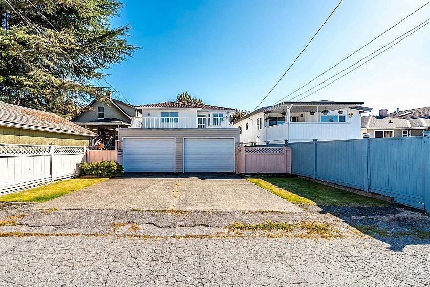 Original owner, first time on the market! House is in excellent condition. Nestled on a charming tree-lined street, this East-facing home offers 2,423 SF of living space on a 4,026 SF lot. Just steps to Fraser & E49 with easy access to transit, cafés, shops, restaurants, and groceries. The main level features 2 bedrooms+ Flex Room, while upstairs offers 3 additional bedrooms. Two potential suites with separate entrances provide great mortgage helper options. Enjoy a large fenced front yard, a 2-car garage, plus space for 2 more vehicles on the driveway. A rare opportunity in a prime location! Easy to show!