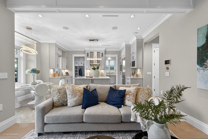 Exquisite design and modern luxury house in the most desirable Dunbar Area. Beautiful 6500 Sq.Ft highland lot built for 5091 Sq.Ft living space offering one of a kind high taste life style. High ceilings of the all floors, extensive use of chandeliers, hardwood floor and tile thru out. This stunning new home features a sensation gourmet kitchen with top grade appliances such as Miele. Separate wok kitchen, radiant heating, A/C, HRV, security system and fully equipped high-end home theater system. 2 bedroom rental suites downstairs and 2 bedroom, 2 full bath laneway help mortgage easier. There are 2* 220 V charger at the garage and park. Kerrisdale Elementary & Point Grey school catchment. Top private schools as Crofton, YORK HOUSE, and ST GEORGES are all nearby, and mins driving to UBC.