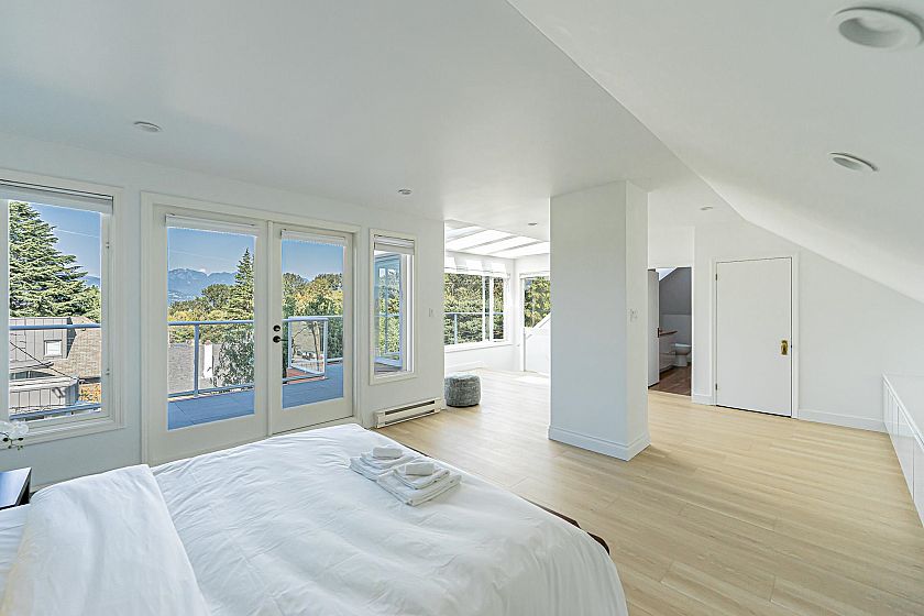 Point Grey, 4 bdrm, 3 bath home on 5200 sf property features meticulously maintained family home boasting over 3100 sf of traditional floorplan inside, 550 sf of serene mountain & ocean view decks to the north & sunny manicured front yard. Spacious principle rooms on main level w/access to view deck from eat-in kitchen, bedroom & dining room. Upper level is a sunny master suite w/spa like bath, dressing room & deck with breathtaking north views. Fully finished basement with 2 bdrm suite, laundry & workshop . The backyard features covered patio, stunning bloom gardens w/water stream, greenhouse & detached 2 car garage w/laneway access. basement reno in 2024, new flooring on masterbdrm,new fence in 2025. Located in best school district, minutes to UBC & only steps to Spanish Banks beach.