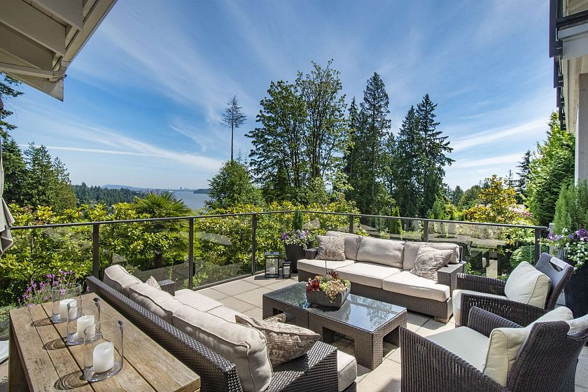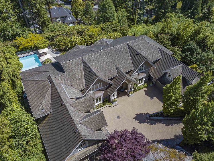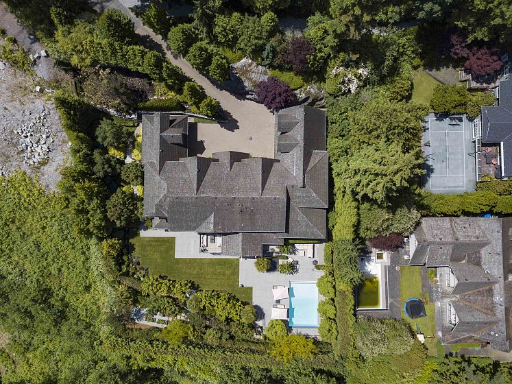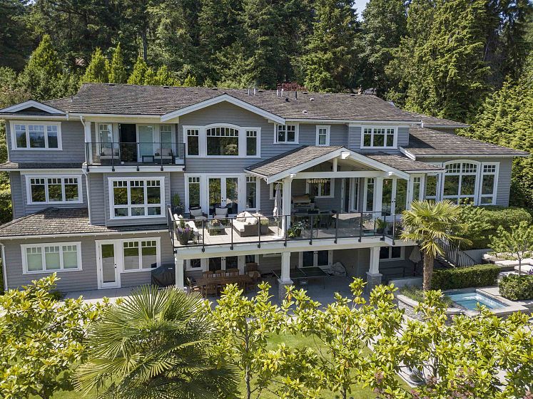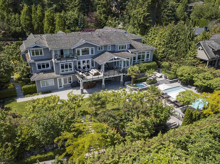 Exceptional luxury estate on a private 0.65-acre lot in the prestigious enclave of West Bay, close to the beach and Dundarave Village. Offering approx 10,000 sq ft across three levels with sweeping ocean views, the home features a grand double-height foyer, private study, and a chef’s kitchen with walk-in pantry opening to a covered ocean-view terrace.Upstairs features four generous bedrooms, including a stunning primary suite with dual walk-in closets and spa-inspired ensuite, along with a children’s playroom and nursery. The lower level is built for entertaining with media room, wine room, billiards lounge with wet bar, gym, and a two-bedroom suite. Resort-style pool, hot tub, heated driveway, air conditioning, and manicured gardens complete this exceptional West Vancouver residence.