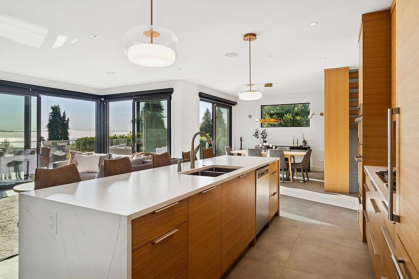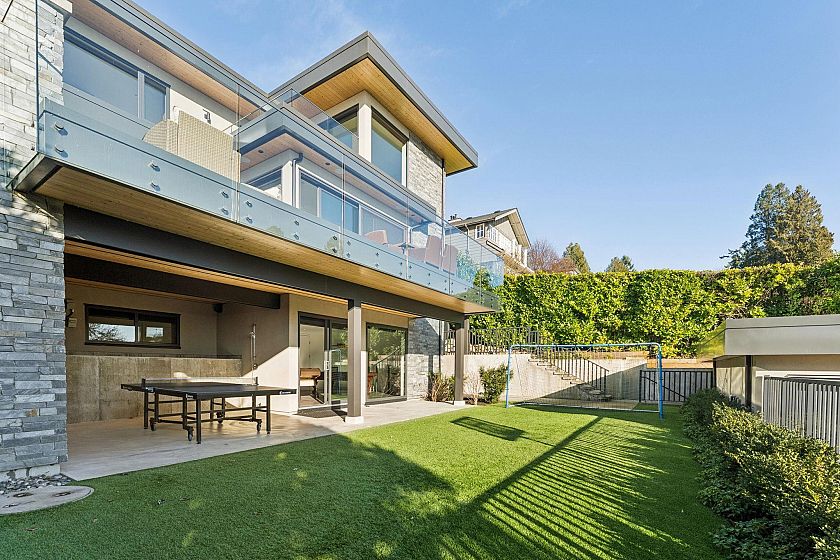 The total package in desirable Dundarave! This 3-year-old architectural stunner offers jaw-dropping ocean views & high-end finishes, including custom millwork, AC & radiant heat. The main floor features an open plan with bonus prep kitchen & oversized mudroom with ventilated storage for active families. The spectacular OUTDOOR DECK is an entertainer's dream with sitting area, TV, fireplace, dining space & outdoor kitchen. Upstairs, you'll find 4 bedrooms, including a primary suite with private deck. The walkout, bright, lower level offers a 1-bed legal SUITE, a huge rec room w/ bar and media space. Outside, enjoy a flat turfed yard and sports pad for soccer, hockey & basketball. WALK to the VILLAGE, beaches, seawall, Irwin Park Elementary, and WV High—enjoy the ultimate family lifestyle.