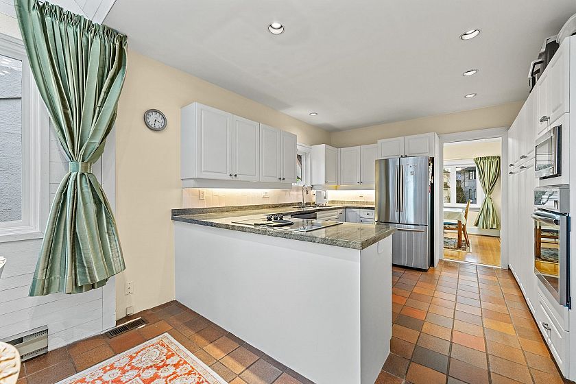 Located in the prestigious Point Grey neighborhood on a quiet street, this charming traditional home has been partially renovated in recent years and features numerous thoughtful upgrades. Improvements include roof, fresh interior and exterior paint, fully refurbished bathrooms with high-end fixtures, and an updated kitchen with new appliances. Additional upgrades include new windows, water tank, furnace, roof deck, drainage,washer and dryer. The upper level offers four generously sized bedrooms, ideal for a growing family. The basement features a spacious recreation room and 2 additional bedrooms, providing flexible living space for guests, extended family or rental units. Walking distance to top-ranked schools Jules Quesnel Elementary, Lord Byng Secondary, Queen Elizabeth Elementary.