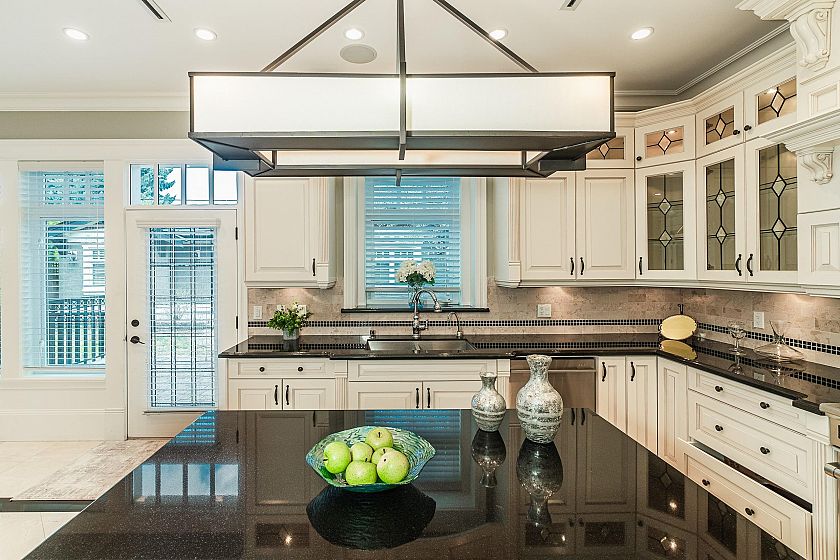 Welcome to this meticulously crafted classic & luxury home, nestled on a quiet inner street in Vancouver's prestigious South Granville neighborhood. Main floor features an open-concept living and dining area, a private office, top appliances equipped gourmet kitchen, a well sized wok kitchen, and a cozy breakfast nook. There are four bedrooms and three bathrooms upstairs. Master bedroom includes a large walk-in closet and a spa-like ensuite. Basement offers two additional bedrooms and a generous entertainment space - a home theater, a bar, and a wine cellar. School catchment: Dr. R.E. McKechnie Elementary & Magee Secondary. Easy access to UBC, Richmond, schools, shopping and restaurants. A must see!
