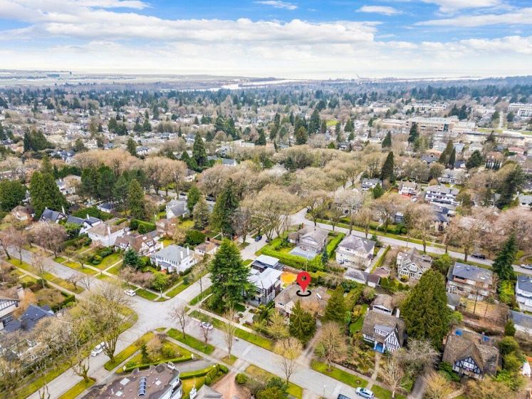Well-built and impeccably maintained Tudor-style home with lane access in prestigious South Granville. Fully renovated in 2008 with an excellent floor plan. Main floor offers elegant principal rooms, gourmet kitchen with wok kitchen, bright office, and covered deck off the family room. Upstairs features five spacious bedrooms. Basement includes a bright recreation room with wet bar, games room, and one bedroom. Exceptional craftsmanship throughout. Steps to Maple Grove and within the Magee Secondary catchment.