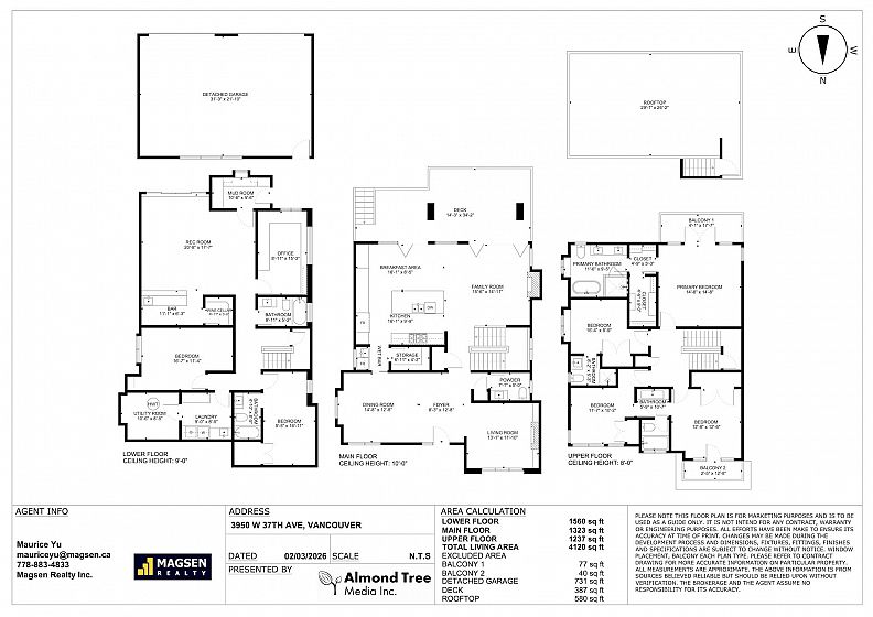 Welcome to this exceptional home in prestigious Dunbar, ideally situated on a quiet, tree-lined street. This well-maintained residence offers a functional layout with generous living and dining areas, abundant natural light, and quality finishes throughout. The spacious kitchen features ample cabinetry and connects seamlessly to the family room with multi-bifold doors open to the patio and private backyard. Upstairs offers comfortable bedrooms including a generous primary suite. Wolf range/oven, Sub-zero fridge, power roller blinds, built-in entertainment system. Large rooftop patio. Enjoy a beautifully landscaped yard and convenient access to top schools, parks, shopping, and transit. Located within sought-after school catchments and just minutes to University of British Columbia.