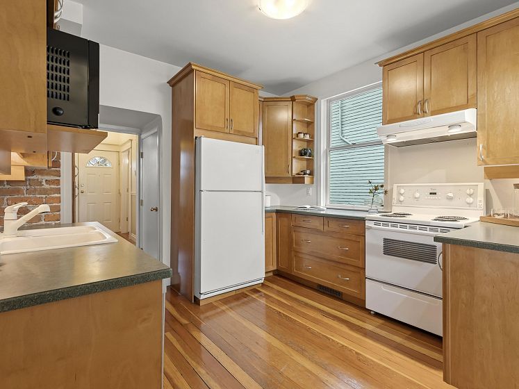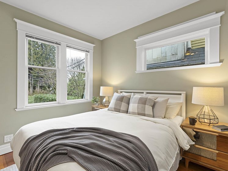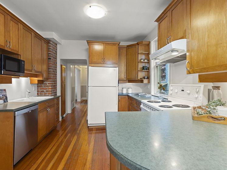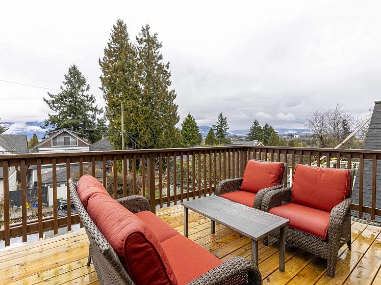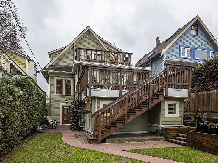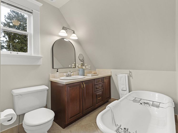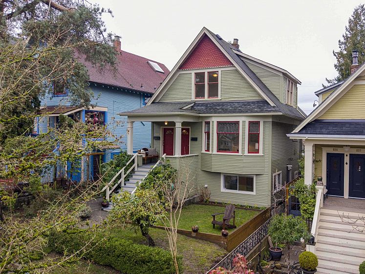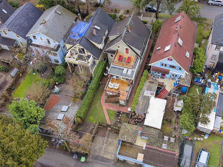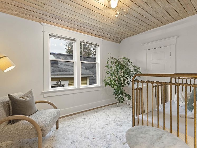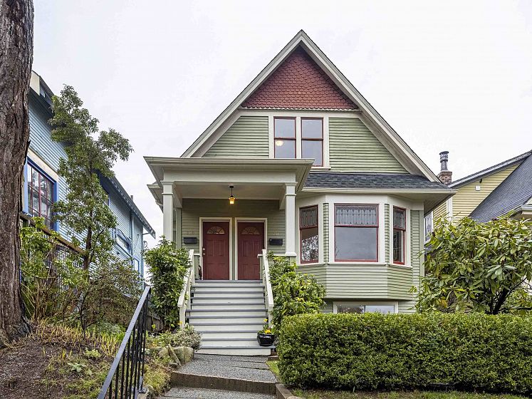 CHARACTER! Beautiful pre-WW1 home w/ vintage details perched at the top of the hill & elevated above the street, offering added privacy, views + light. Top floor has 3 beds +1 bath w/ claw tub. Big deck off bedroom shows off panoramic views. Main floor has it all, grand living room w/ stained glass + over height ceilings, updated kitchen flows into bright dining room w/ skylights & sliding door onto 2nd big deck + a guest bedroom + an office. Original fir floors throughout, heated floors in main floor bath. Fully finished basement easily accessed or closed off from main floor + its own patio. 200 amps. 3 storage rooms incl a big workshop - so much room for your all your hobbies! Great back yard w/ gardens. 2 pkg spots off the alley.