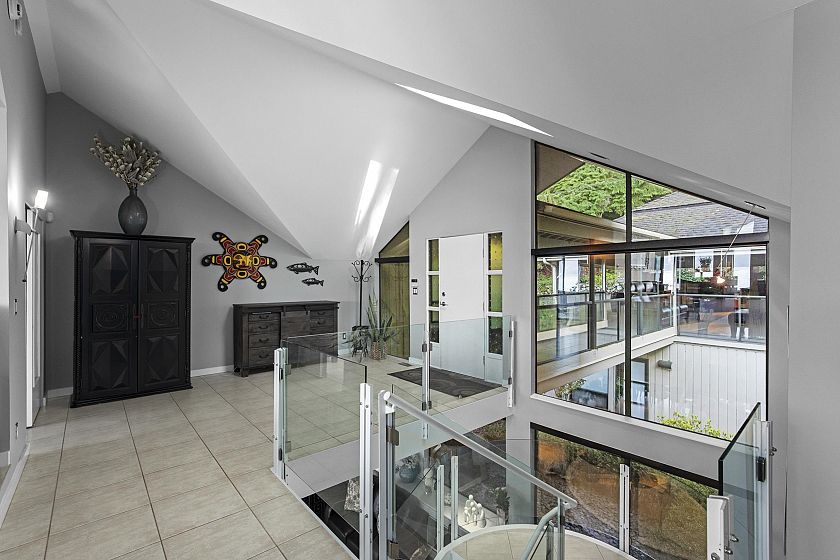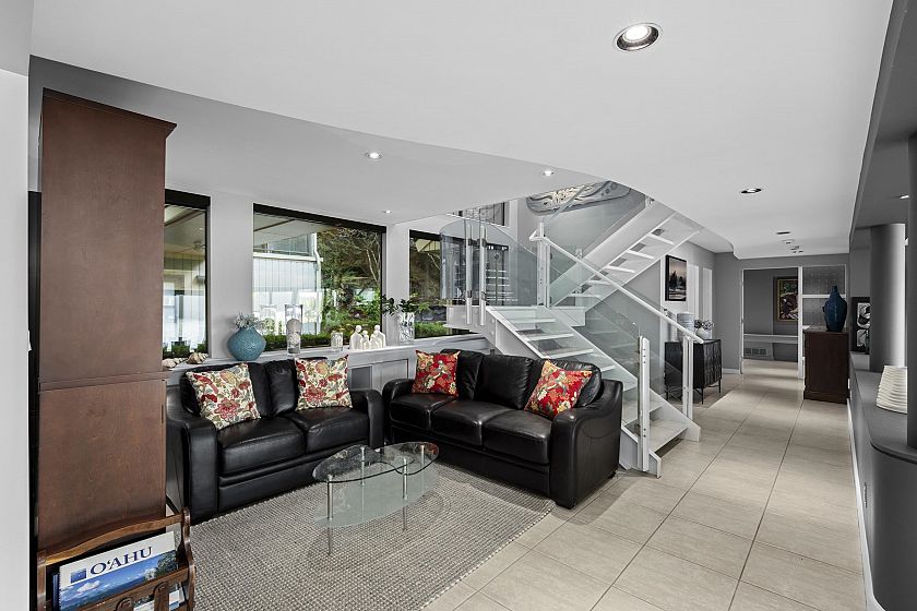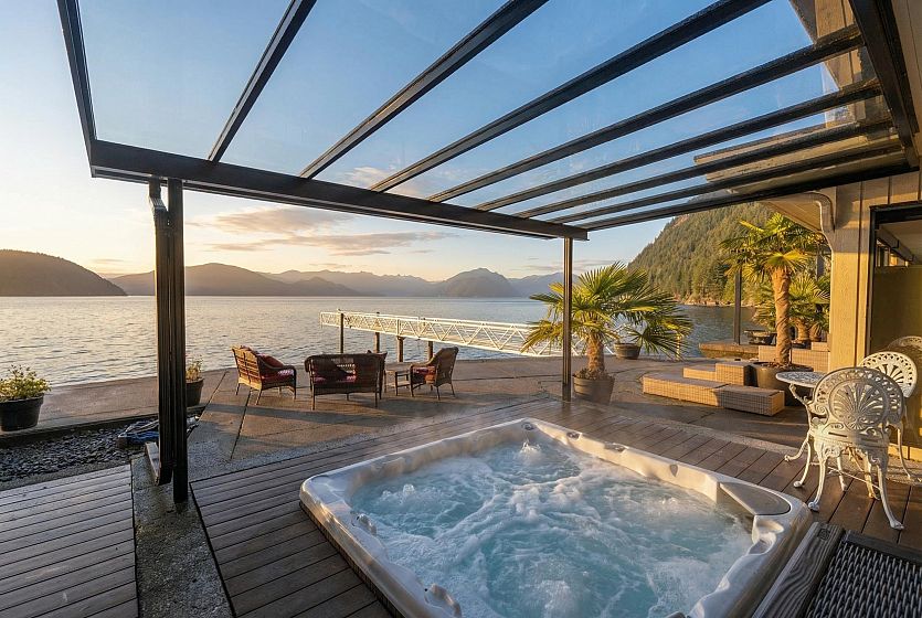 An extraordinary oceanfront estate offering 100 feet of low-bank waterfront with a commercial-grade private dock and 40-ft float for your personal watercraft. This 5,091 sq ft Gold Georgie Award–winning residence features a world-class Downsview kitchen, a luxurious main-floor primary suite, and dramatic open-concept living/dining with floor-to-ceiling windows framing panoramic ocean views and sunsets. The upper level offers two large bedrooms, a spacious family room, and two solariums. Expansive oceanside patio with sunken hot tub, covered BBQ area, and sauna. Enjoy nature at your doorstep with whales, seals, and bald eagles. A rare West Vancouver waterfront opportunity combining privacy, lifestyle, and direct access to the ocean in a truly irreplaceable setting.