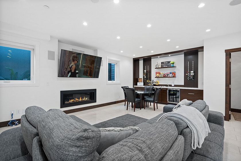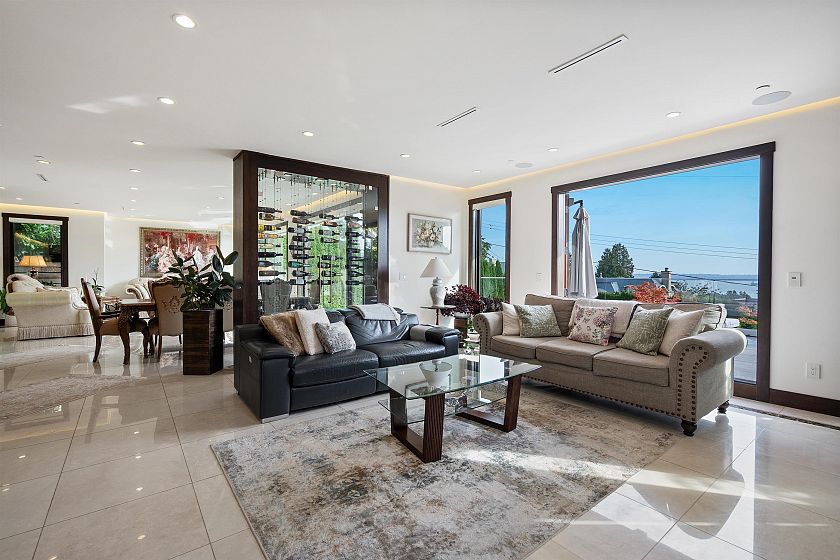 This 4,635 Sqf luxury residence sits on a 9,293 Sqf lot and captures breathtaking south-facing ocean views. Built in 2016, it offers 5 bedrooms, 6 bathrooms, an elevator, radiant heat, A/C, and refined finishes throughout. An open floor plan seamlessly connects spacious living and dining areas, with the living room opening to a view balcony and the kitchen extending to a covered patio and private backyard. The chef’s kitchen with Gaggenau appliances is complemented by a Wolf-equipped wok kitchen. The lower level includes a rec room, media room, and 2-bedroom legal suite. Detached guest accommodation with bedroom & bath (no kitchen) is perfect for visitors, a nanny, or office. Walking distance to Irwin Park Elementary, Dundarave Village & the beach. OPEN HOUSE FEB 28th, SAT 2 - 4 pm