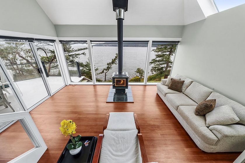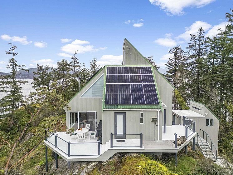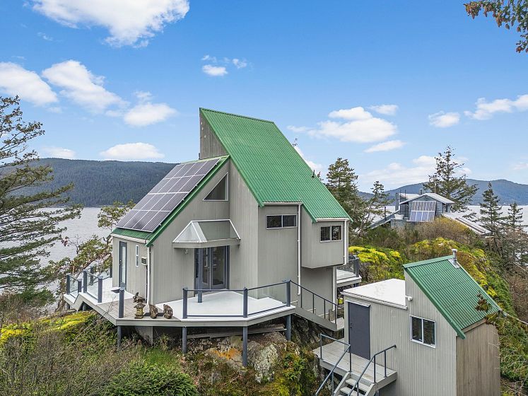 Your Private West Coast Oasis, 10min boat ride fr Eagle Harbour or Thunderbird Marina in WestVan. Waterfront home, on top of a 75ft high-bank w/ expansive SW exposure, offers stunning views & sunsets to enjoy the breathtaking serene nature, marine & wildlife fr the 5decks, kitchen, 2beds & dining area or living room next to a cozy wood burning fireplace. Custom built home sits on a 1/3 acre, can be your off-grid Paradise allows you to take in the tranquil scenery fr all directions: open floorplan; 2storeys, 20’ vaulted ceilings, Fir flooring, large loft style primary w/ Wool carpeting & skylight to enjoy the night stars. New solar power system, electric panel, breakers, 240V water pumps, new S/S appliances, & more- perfect for Recreational or Full Time Living. 3D Link https://rb.gy/o094yo