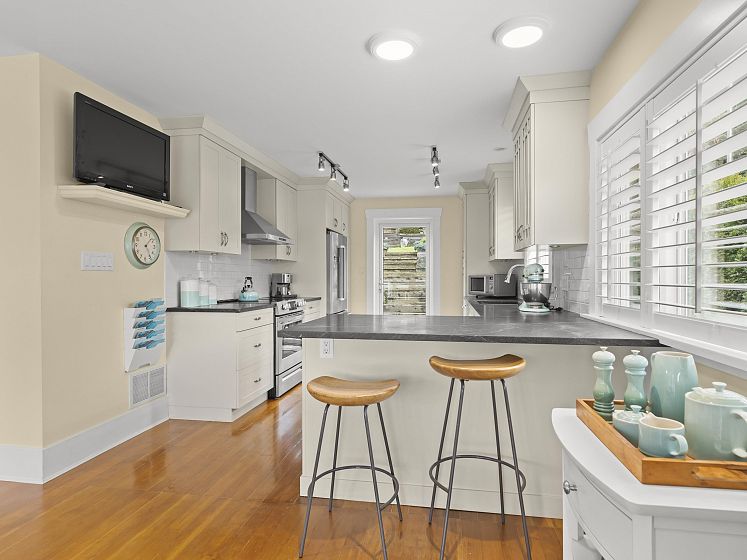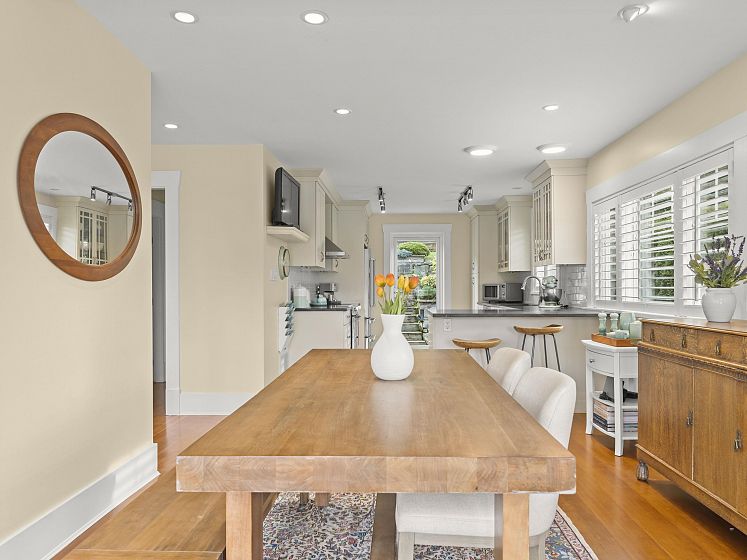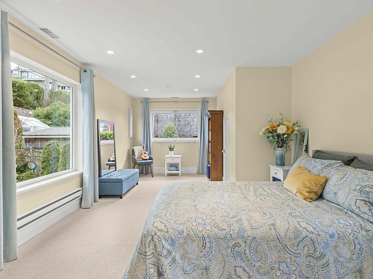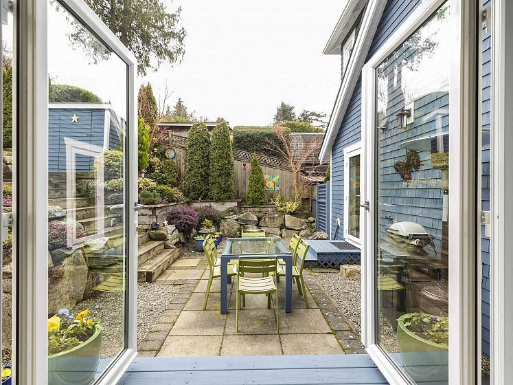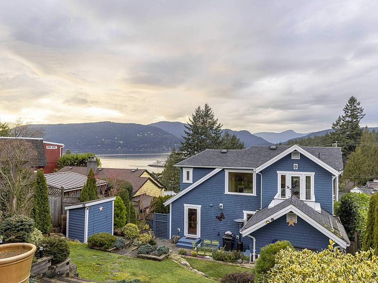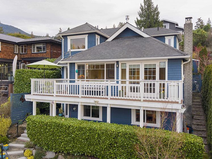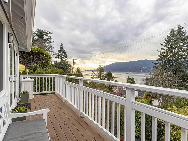 Just steps from Garrow Bay & across from Whytecliff Park, this beautifully expanded & remodeled seaside home offers breathtaking ocean views & vibrant sunsets from the open-concept living, dining, kitchen areas as well as the balcony. Designed for light & effortless entertaining, the home flows to a private stone courtyard, perfect for summer BBQs. Architecturally transformed in 2011/2012, it blends cottage charm with modern comfort—shingle siding, fir floors, new carpets & a fully fenced yard. The current owner has created amazing landscaped gardens that beautifully frame the home. The top floor retreat captures intimate views of Bowen Island and passing ferries. A lovely neighbourhood with beaches, parks, cafes & mariners at your doorstep. Open House: Sunday March 1st from 2 to 4pm.