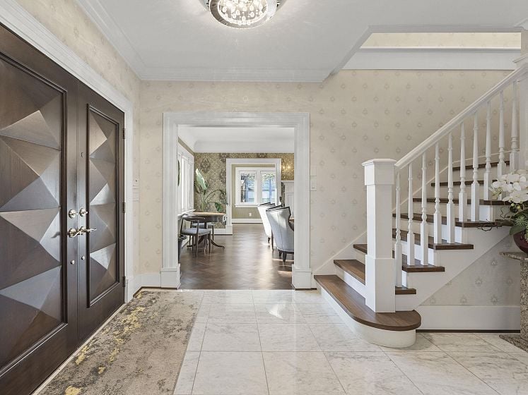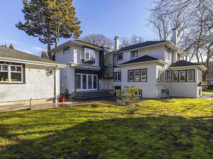 Nestled within the prestigious enclave of Shaughnessy, this magnificent Georgian-style residence boasts timeless architecture and contemporary sophistication. Meticulously renovated w/ Italian marble tiles, Herringbone floors, and designer light fixtures, A/C & more. This bright 4,867 sqft home has 6 beds and 5.5 baths, situated on a 8900 sqft CORNER lot. Main floor features spacious rooms w/designated living, family, dining rooms, arched piano hall, study, & den. Gourmet kitchen w/ SubZero & Miele appliances. Up find 4 bedrooms incl. large principal w/ ensuite and w/I closet + additional office space. Downstairs 2 bedrooms, office & rec room. Flexible living areas for all stages of your family. 3car garage +abundant outdoor living space. Close to top schools, parks & more.
