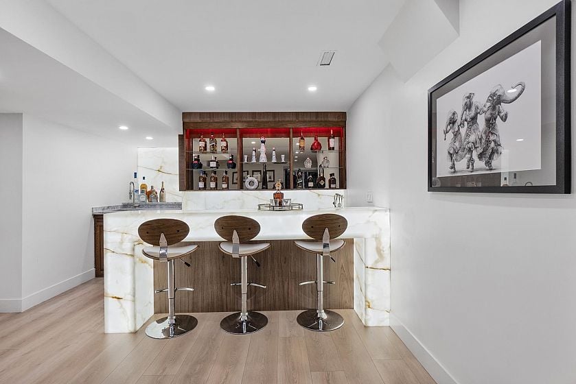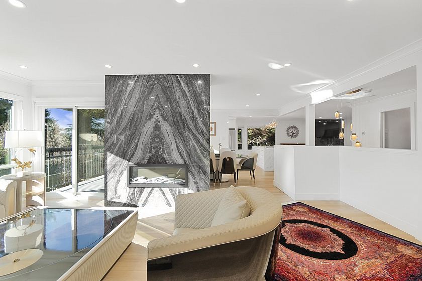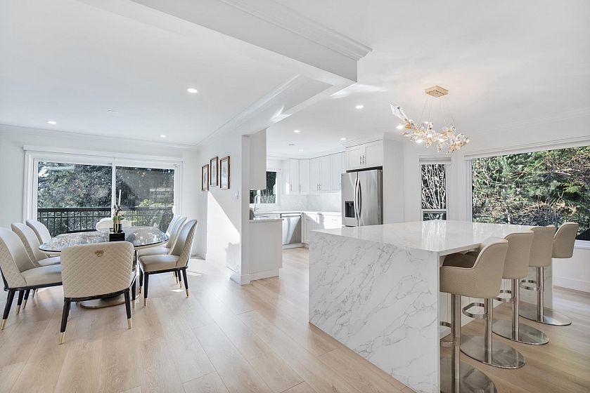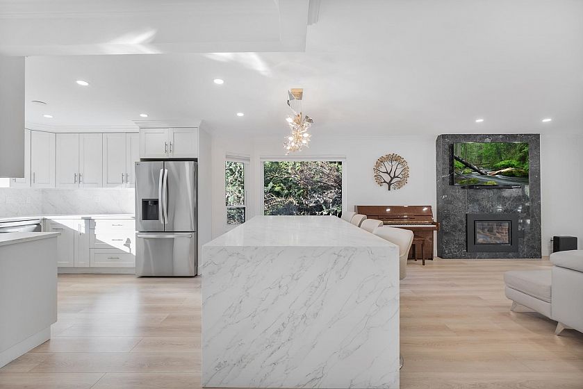Welcome to this beautifully updated home in the heart of Upper Delbrook. Offering over 3,800 sq.ft. of fully above-ground living space, this residence has been thoughtfully renovated with high-quality finishes throughout, including a brand-new kitchen with premium appliances, floor-to-ceiling natural stone features, a spectacular wet bar, and air conditioning. The functional layout features five bedrooms, including the primary bedroom on the main living level. Expansive living areas open onto a private backyard with a large covered deck-ideal for year-round entertaining. Situated on a quiet street within the Braemar Elementary and Carson Graham Secondary catchments, this is a rare opportunity in North Vancouver. Open House Saturday March 14th, 2-4 pm