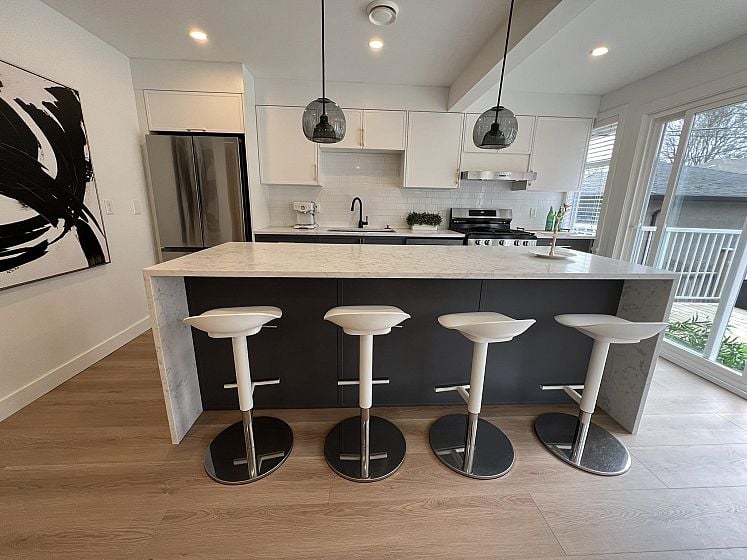 This stunning renovation transformed a dated one-story family home into a modern open-concept living space. It now features a brand-new kitchen with sleek finishes, new hardwood flooring, beautifully updated bathrooms complete with modern fixtures. Updated heating system with integrated cooling. The renovated lower level could easily become a 2 bed mortgage helper with its own entrance. South-facing backyard is perfect for outdoor entertaining, with a new sundeck and a serene garden patio-ideal for summer gatherings. There is a gentle touch of City and mountain views. Located near some of the City's top schools, Lord Kitchener Elementary, Lord Byng Secondary, St. George's, Crofton House, and WPGA. Comfort and convenience on Vancouver's Westside.