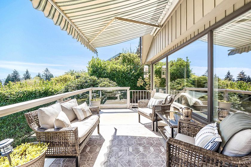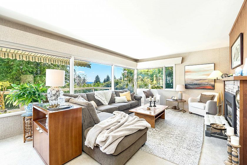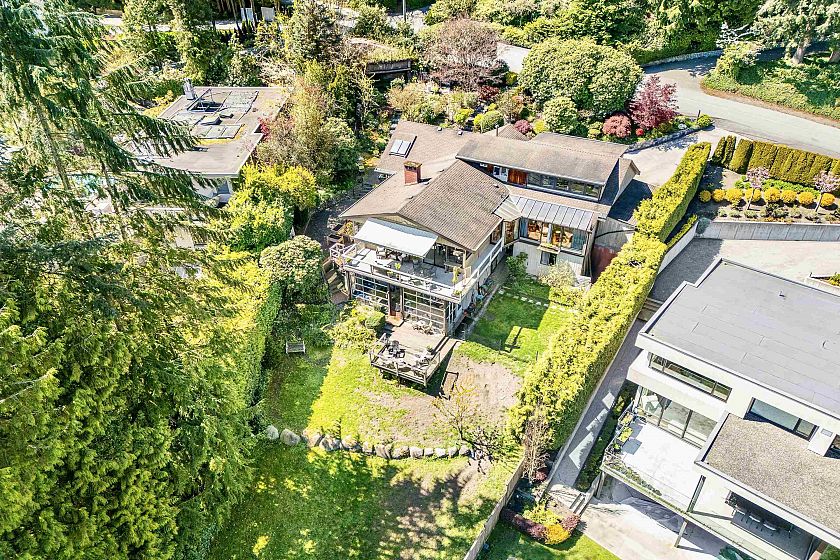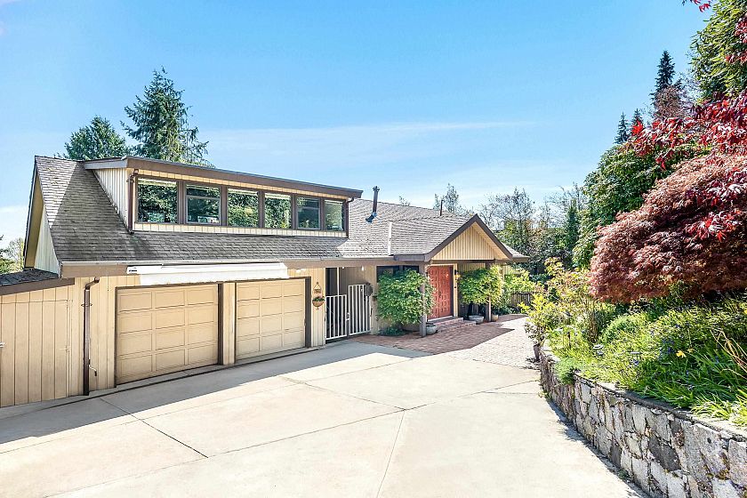 Sentinel Hill timeless charm, 16500 SF ppty offering exceptional privacy, approx 4625 SF over 3 sprawling levels, meticulously maintained, feat grand living rm w/stone FP, adj dining rm, priv office & galley kitchen abundant in cabinetry, incl S/S appliances, brkfst bar & eating area, family rm, conservatory & sundeck overlook lush gardens. Sun-filled patios & gardens ensure indoor-outdoor living at its finest. Total 6 bedrms: Main Level primary bedrm w/atrium-inspired 4-piece ensuite & dressing rm, 2 bedrm on Upper Level w/rec space & 3-bedrm garden suite on Lower. Incl 2-car garage & storage. Mins to shopping, beaches & a 1-hr scenic drive to Whistler. One of largest pptys on Sentinel Hill. Live comfortably in home as is or create your own custom dream estate. Extraordinary Opportunity!