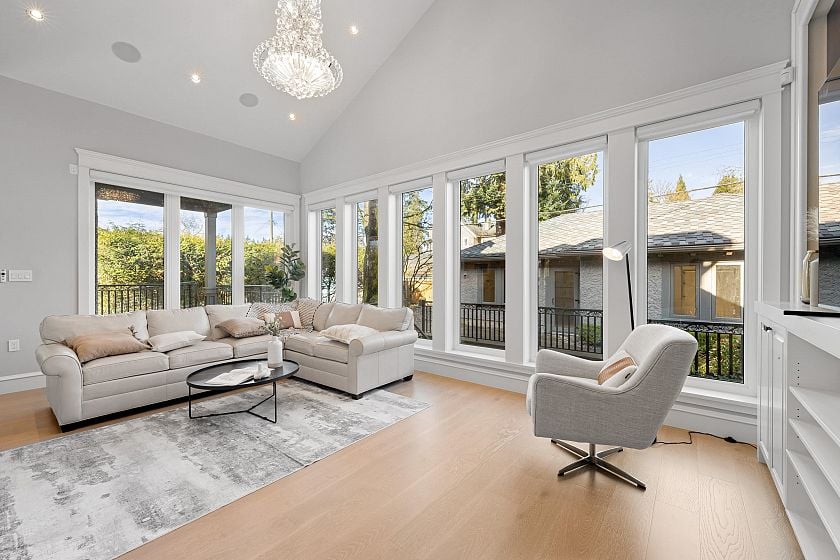 A truly magnificent luxury estate in prestigious Dunbar. Priced well below BC Assessment—an exceptional opportunity. This exquisitely crafted custom home offers nearly 5,700 sq ft of elegant living space on a 66 × 130.06 ft lot (approx. 8,584 sq ft), elevated on the high side of the street and surrounded by professionally landscaped grounds for privacy and presence. Featuring 10-ft ceilings, rich hardwood flooring, and a show-stopping gourmet chef’s kitchen, the home offers 6 bedrooms and 7 bathrooms, plus a movie theatre, wine cellar, full bar, sauna, and a spacious recreation room—perfect for luxury living and entertaining. Open House: Sun April 5 2-4 PM.