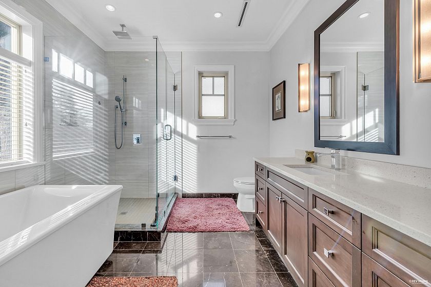 Welcome to this exceptional 6 bed, 6 bath European-style custom home in prestigious S.W. Marine on Vancouver’s Westside. Thoughtfully designed with 4 spacious ensuite bedrooms upstairs and a luxurious main level featuring an open kitchen + wok kitchen with VIATERA quartz, SUB-ZERO & WOLF appliances. Elegant living and family rooms flow seamlessly to a sun-soaked backyard. The flexible basement includes a rec room and suite potential. Premium IBC boiler, custom millwork, and home office complete the picture. Steps from McKechnie Elementary and in the Magee catchment. A rare Westside family home in a top school catchment! Open House 2-4pm Saturday, Feb 28