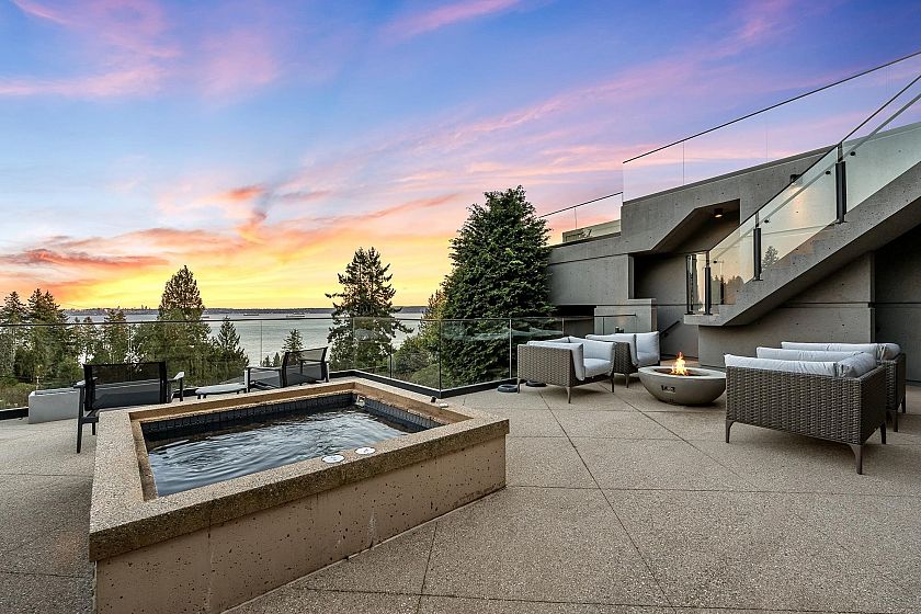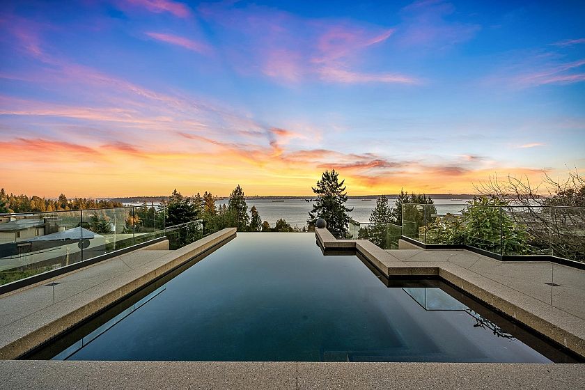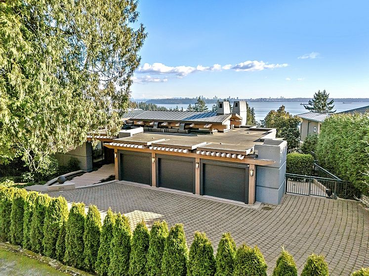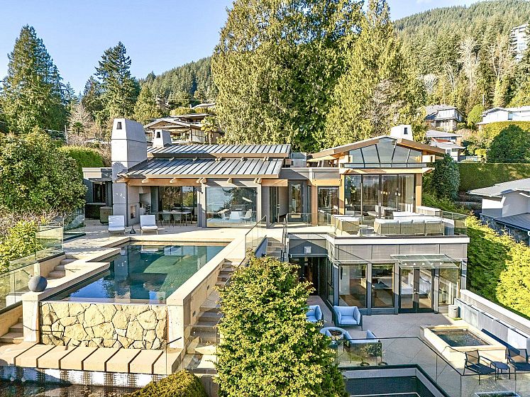 Set in West Vancouver’s most coveted enclave, this extraordinary West Bay estate offers stunning ocean and city views from a private vantage within a top school catchment. Designed by acclaimed architect Robert Ciccozzi, it features bold concrete construction, commercial-grade quality, and recent cosmetic renovations including new air conditioning. Spanning three levels, the home has four ensuited bedrooms, five bathrooms, open-concept living and dining, a renovated kitchen, family room, theatre, office, granite wine cellar, and three-car garage. Outdoor living includes terraces, a black-bottom infinity pool, fireside dining with BBQ, and jacuzzi, creating a resort-style environment moments from West Vancouver’s finest amenities, with elegant finishes throughout, exuding timeless luxury.